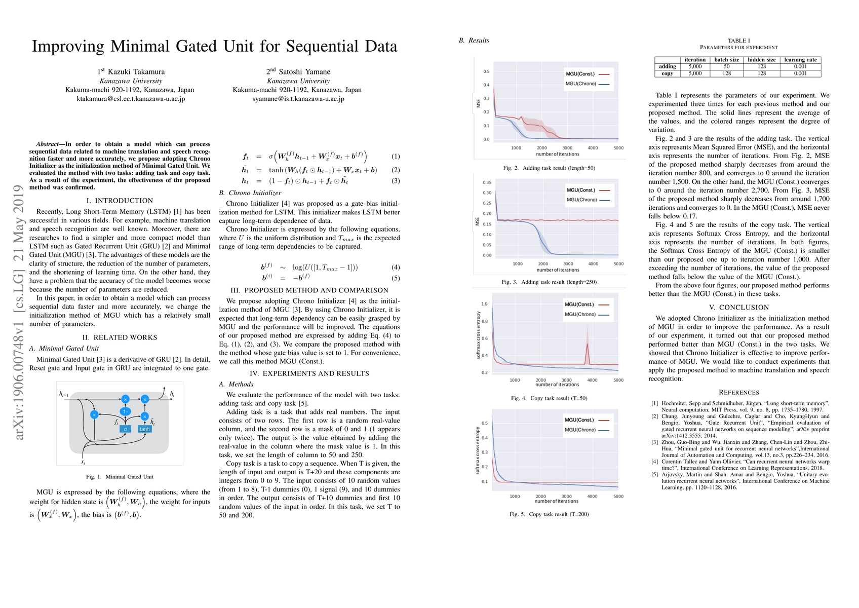 The paper proposes using Chrono Initializer to improve Minimal Gated Unit for processing sequential data in tasks like machine translation and speech recognition. Experiments confirmed its effectiveness.
