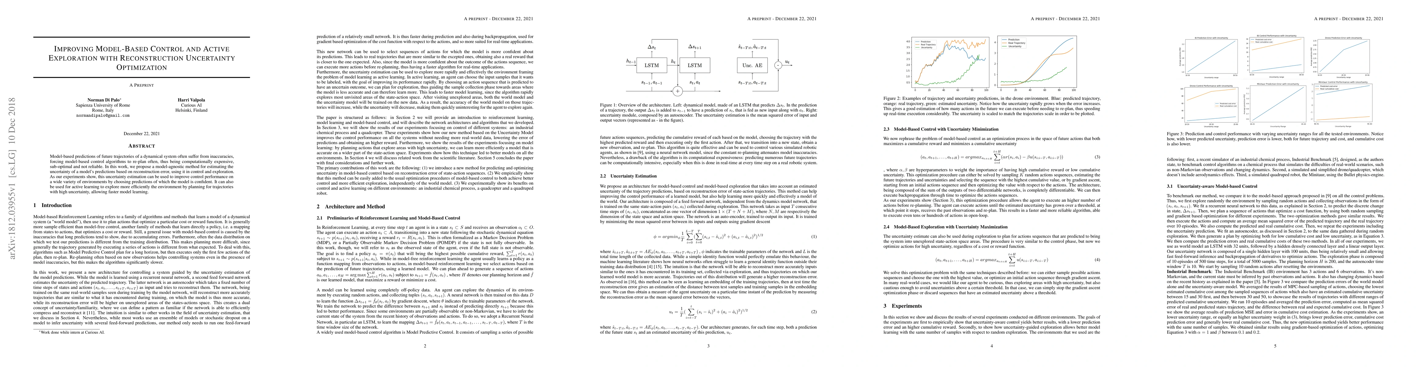 Model based predictions of future trajectories of a dynamical system often suffer from inaccuracies, forcing model based control algorithms to re-plan often, thus being computationally expensive, suboptimal and not reliable. In this work, we propose a model agnostic method for estimating the uncertainty of a model?s predictions based on reconstruction error, using it in control and exploration. As our experiments show, this uncertainty estimation can be used to improve control performance on a wide variety of environments by choosing predictions of which the model is confident. It can also be used for active learning to explore more efficiently the environment by planning for trajectories with high uncertainty, allowing faster model learning.