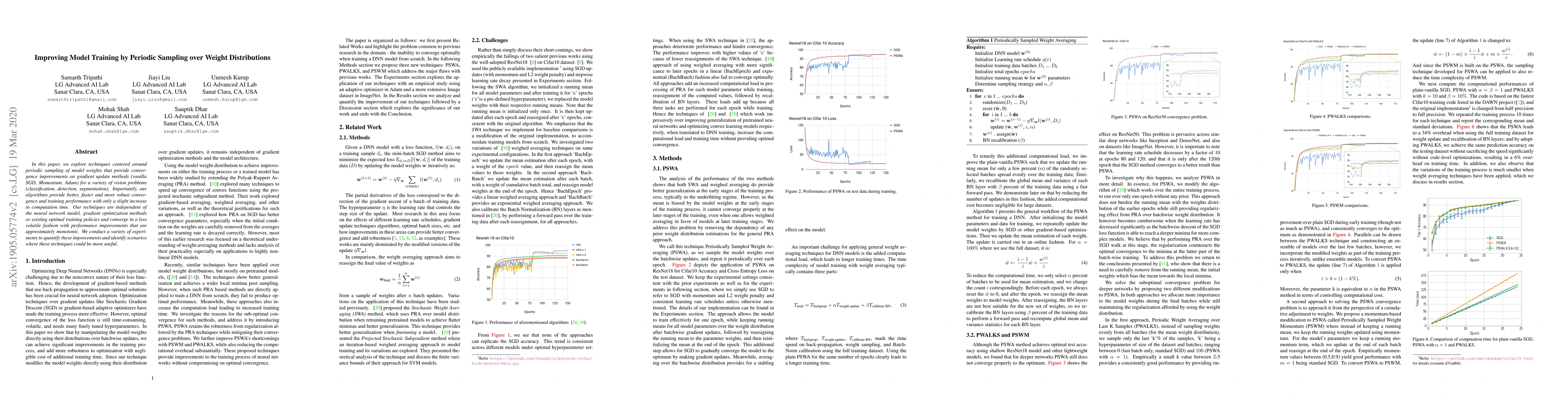 In this paper, we explore techniques centered around periodic sampling of model weights that provide convergence improvements on gradient update methods (vanilla \acs{SGD}, Momentum, Adam) for a variety of vision problems (classification, detection, segmentation). Importantly, our algorithms provide better, faster and more robust convergence and training performance with only a slight increase in computation time. Our techniques are independent of the neural network model, gradient optimization methods or existing optimal training policies and converge in a less volatile fashion with performance improvements that are approximately monotonic. We conduct a variety of experiments to quantify these improvements and identify scenarios where these techniques could be more useful.