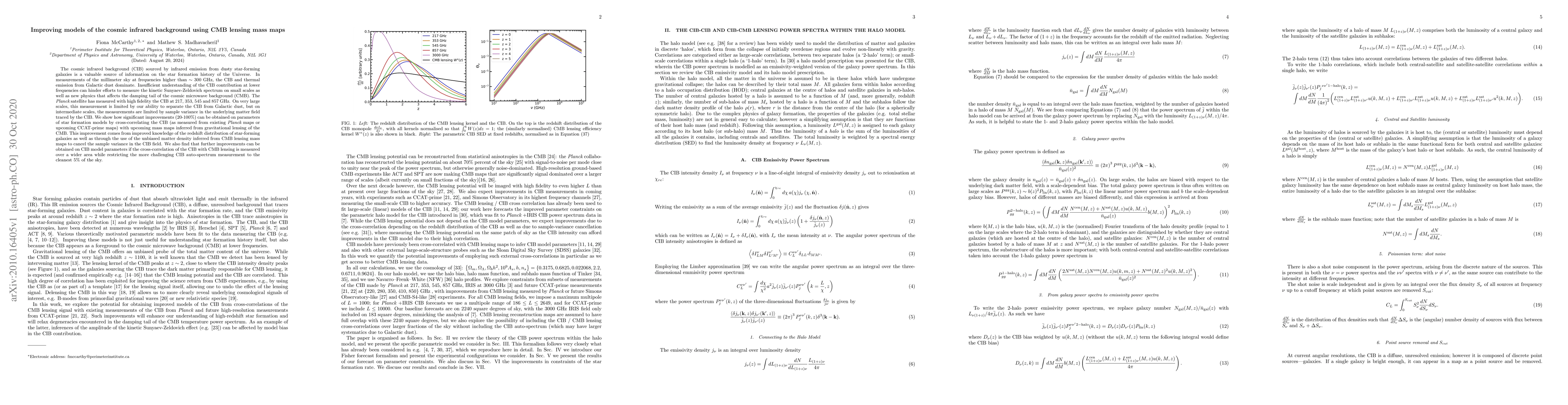 The cosmic infrared background (CIB) sourced by infrared emission from dusty star-forming galaxies is a valuable source of information on the star formation history of the Universe. In measurements of the millimeter sky at frequencies higher than $\sim 300$ GHz, the CIB and thermal emission from Galactic dust dominate. A limited understanding of the CIB contribution at lower frequencies on the other hand can hinder efforts to measure the kinetic Sunyaev-Zeldovich spectrum on small scales as well as new physics that affects the damping tail of the cosmic microwave background (CMB). The Planck satellite has measured with high fidelity the CIB at 217, 353, 545 and 857 GHz. On very large scales, this measurement is limited by our ability to separate the CIB from Galactic dust, but on intermediate scales, the measurements are limited by sample variance in the underlying matter field traced by the CIB. We show how significant improvements (20-100%) can be obtained on parameters of star formation models by cross-correlating the CIB (as measured from existing {\it Planck} maps or upcoming CCAT-prime maps) with upcoming mass maps inferred from gravitational lensing of the CMB. This improvement comes from improved knowledge of the redshift distribution of star-forming galaxies as well as through the use of the unbiased matter density inferred from CMB lensing mass maps to cancel the sample variance in the CIB field. We also find that further improvements can be obtained on CIB model parameters if the cross-correlation of the CIB with CMB lensing is measured over a wider area while restricting the more challenging CIB auto-spectrum measurement to the cleanest 5% of the sky.