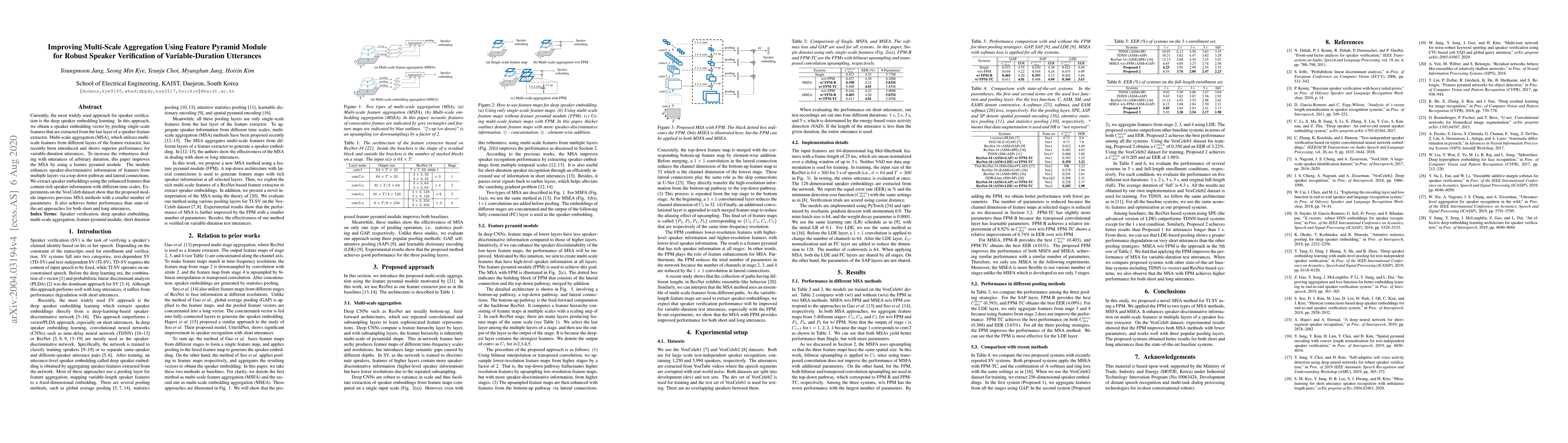 This paper proposes an enhanced feature pyramid module for multi-scale aggregation to improve speaker verification for variable-duration utterances, achieving better performance with fewer parameters compared to state-of-the-art methods. Experiments on the VoxCeleb dataset demonstrate superior results for both short and long utterances.
