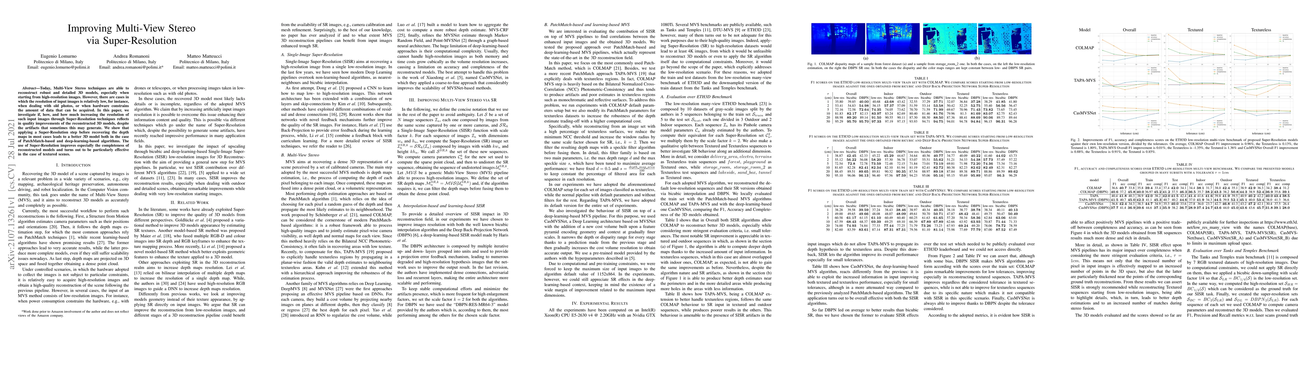 Today, Multi-View Stereo techniques are able to reconstruct robust and detailed 3D models, especially when starting from high-resolution images. However, there are cases in which the resolution of input images is relatively low, for instance, when dealing with old photos, or when hardware constrains the amount of data that can be acquired. In this paper, we investigate if, how, and how much increasing the resolution of such input images through Super-Resolution techniques reflects in quality improvements of the reconstructed 3D models, despite the artifacts that sometimes this may generate. We show that applying a Super-Resolution step before recovering the depth maps in most cases leads to a better 3D model both in the case of PatchMatch-based and deep-learning-based algorithms. The use of Super-Resolution improves especially the completeness of reconstructed models and turns out to be particularly effective in the case of textured scenes.