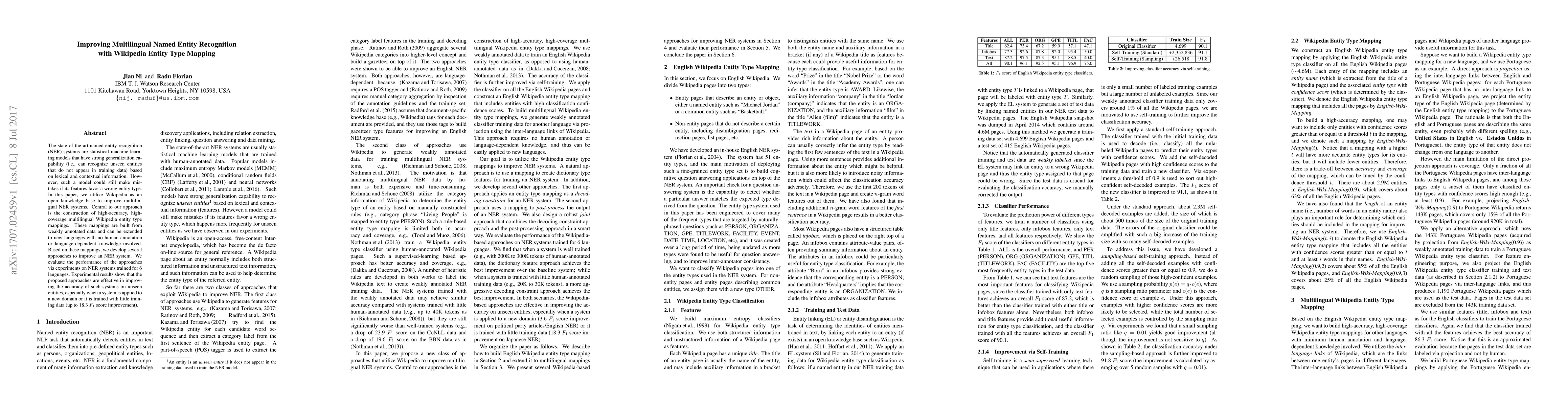 This paper proposes using Wikipedia entity type mappings to enhance multilingual named entity recognition (NER) systems, achieving up to 18.3 F1 score improvement on unseen entities, especially in new domains or under limited training data. The approach leverages high-accuracy, high-coverage multilingual mappings from weakly annotated data, requiring no human annotation or language-specific knowledge.
