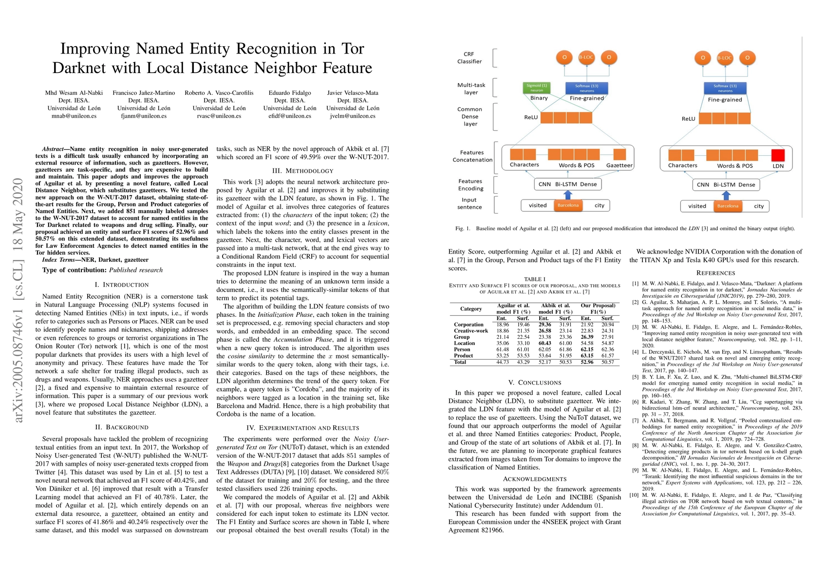 This paper introduces a novel Local Distance Neighbor feature to enhance named entity recognition in noisy Tor Darknet texts, achieving state-of-the-art results without relying on costly gazetteers. The approach was tested on an extended W-NUT-2017 dataset, showing promising F1 scores for detecting entities related to illegal activities.