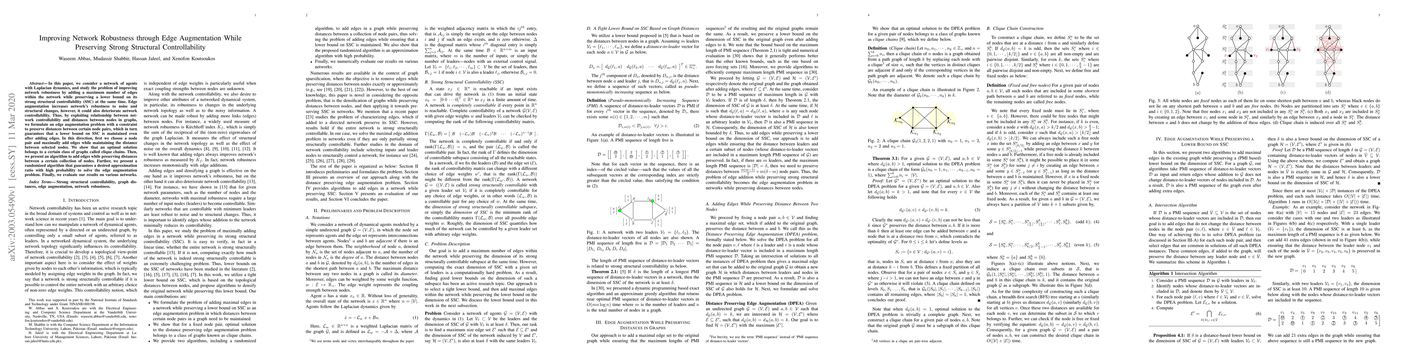 This paper proposes a method to enhance network robustness by augmenting edges while ensuring a minimum level of strong structural controllability (SSC) is preserved. The authors develop an algorithm to add edges while maintaining distances between specific node pairs, thereby guaranteeing SSC, and evaluate their approach on various networks.