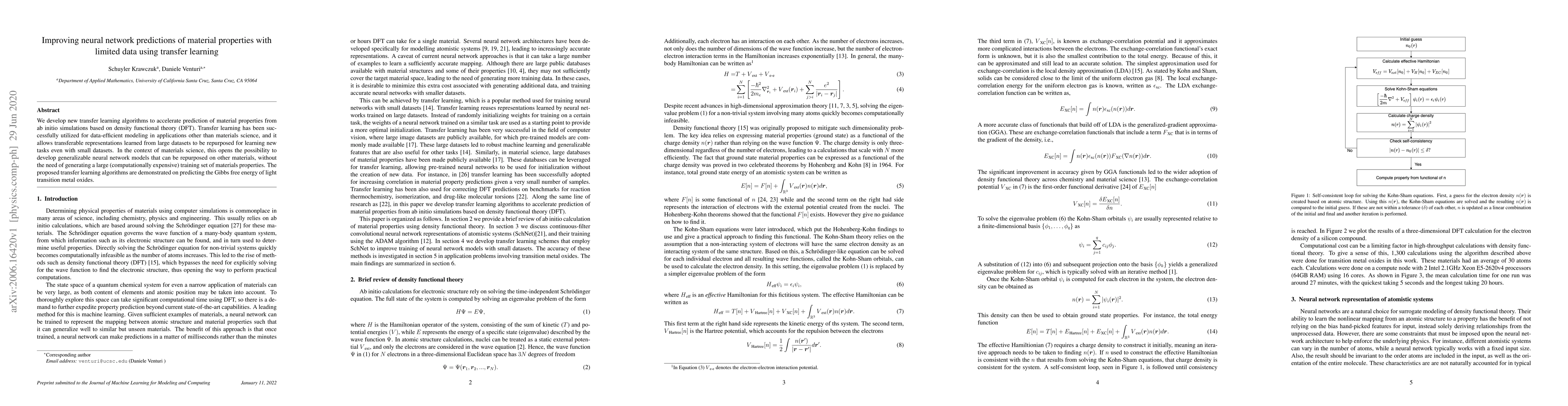 This paper introduces transfer learning algorithms to enhance neural network predictions of material properties from limited data, specifically for Gibbs free energy in transition metal oxides, leveraging large datasets to create generalizable models without extensive new training.