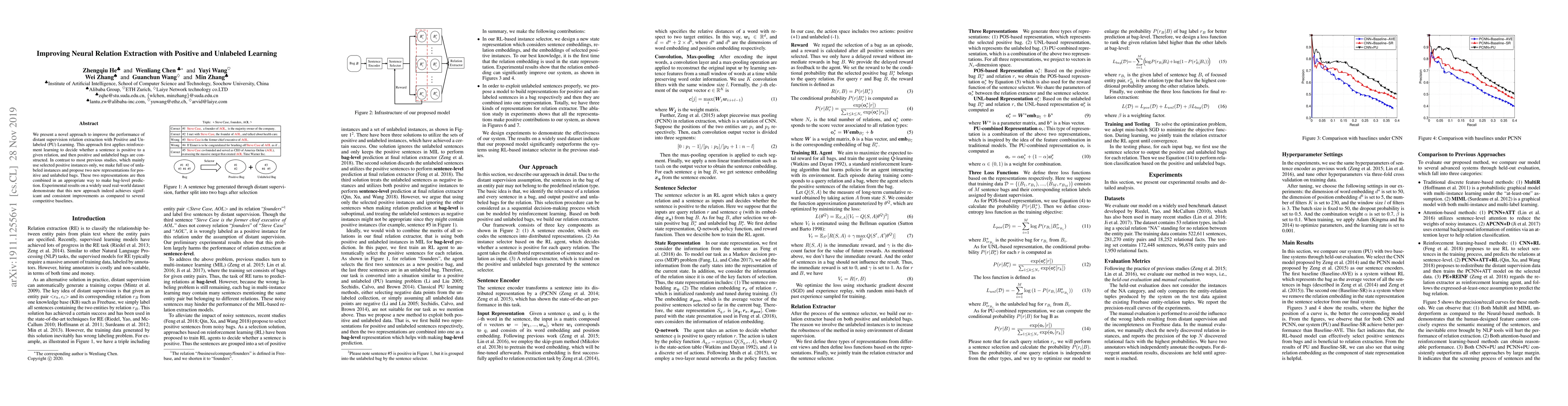 This paper introduces a novel PU Learning approach for neural relation extraction, utilizing reinforcement learning to identify positive sentences and constructing positive and unlabeled bags. It achieves significant improvements over baselines by fully utilizing unlabeled instances and employing two new representations for better bag-level predictions.