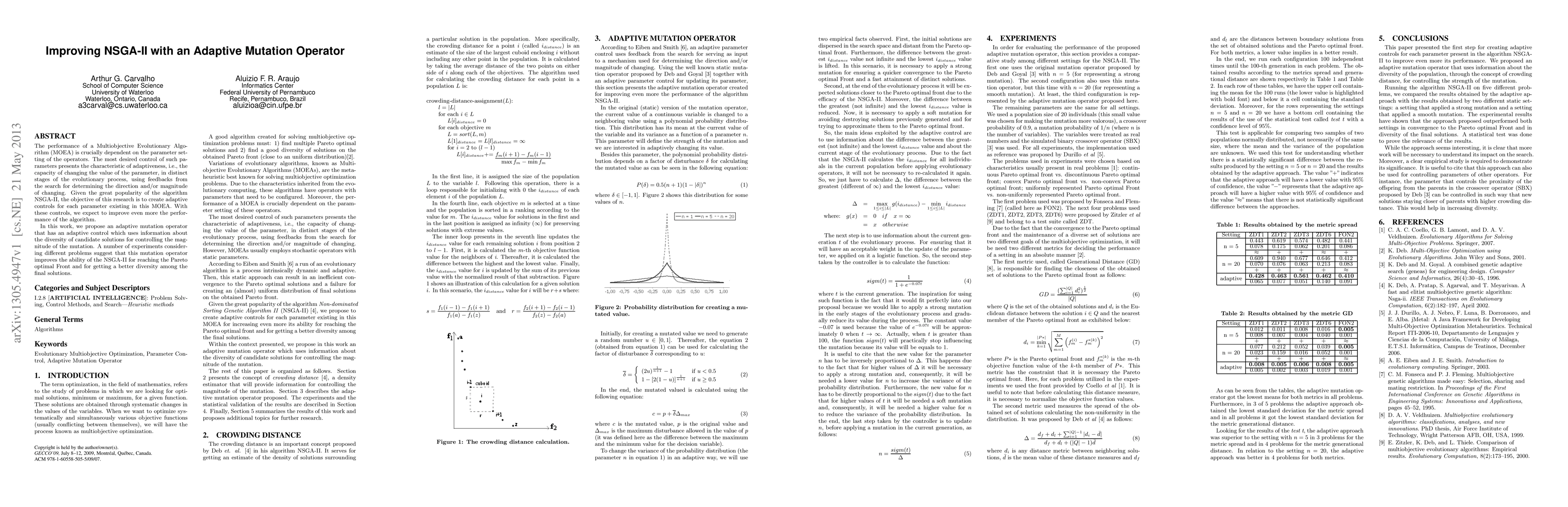 The performance of a Multiobjective Evolutionary Algorithm (MOEA) is crucially dependent on the parameter setting of the operators. The most desired control of such parameters presents the characteristic of adaptiveness, i.e., the capacity of changing the value of the parameter, in distinct stages of the evolutionary process, using feedbacks from the search for determining the direction and/or magnitude of changing. Given the great popularity of the algorithm NSGA-II, the objective of this research is to create adaptive controls for each parameter existing in this MOEA. With these controls, we expect to improve even more the performance of the algorithm. In this work, we propose an adaptive mutation operator that has an adaptive control which uses information about the diversity of candidate solutions for controlling the magnitude of the mutation. A number of experiments considering different problems suggest that this mutation operator improves the ability of the NSGA-II for reaching the Pareto optimal Front and for getting a better diversity among the final solutions.