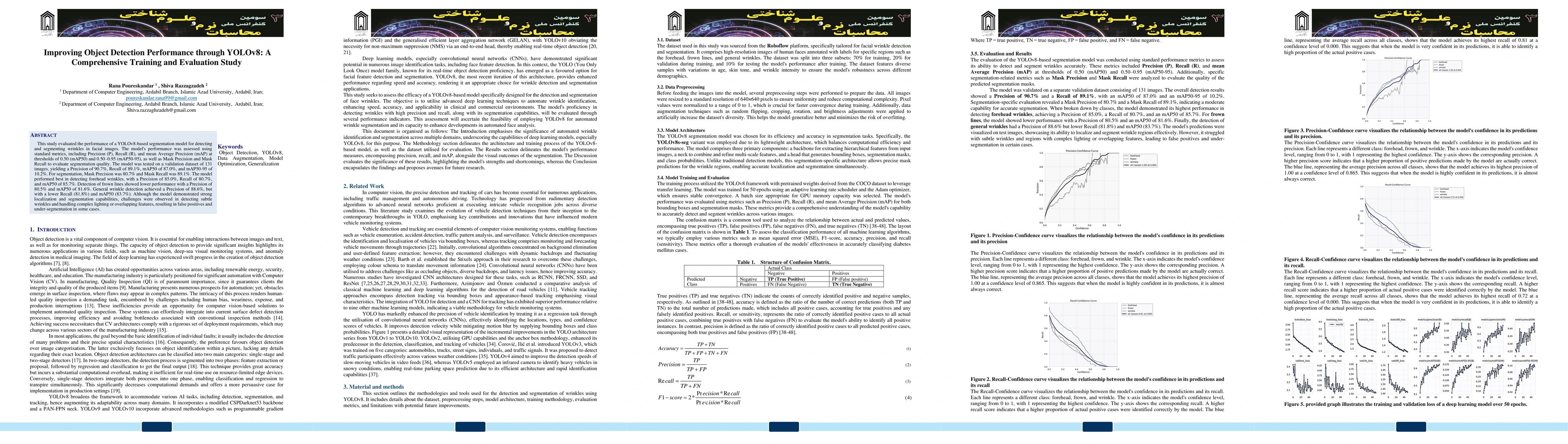 This work distinguishes itself by focusing on wrinkle detection, a specific yet relevant aspect of facial aging analysis, and by providing an exhaustive study of YOLOv8's performance in this domain.