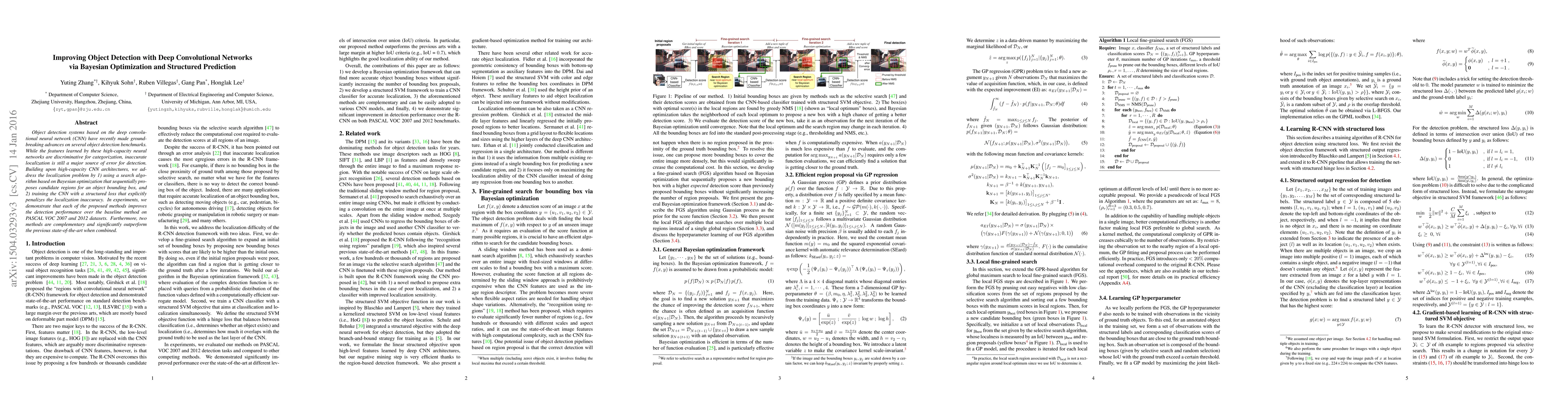 Object detection systems based on the deep convolutional neural network (CNN) have recently made ground- breaking advances on several object detection benchmarks. While the features learned by these high-capacity neural networks are discriminative for categorization, inaccurate localization is still a major source of error for detection. Building upon high-capacity CNN architectures, we address the localization problem by 1) using a search algorithm based on Bayesian optimization that sequentially proposes candidate regions for an object bounding box, and 2) training the CNN with a structured loss that explicitly penalizes the localization inaccuracy. In experiments, we demonstrated that each of the proposed methods improves the detection performance over the baseline method on PASCAL VOC 2007 and 2012 datasets. Furthermore, two methods are complementary and significantly outperform the previous state-of-the-art when combined.