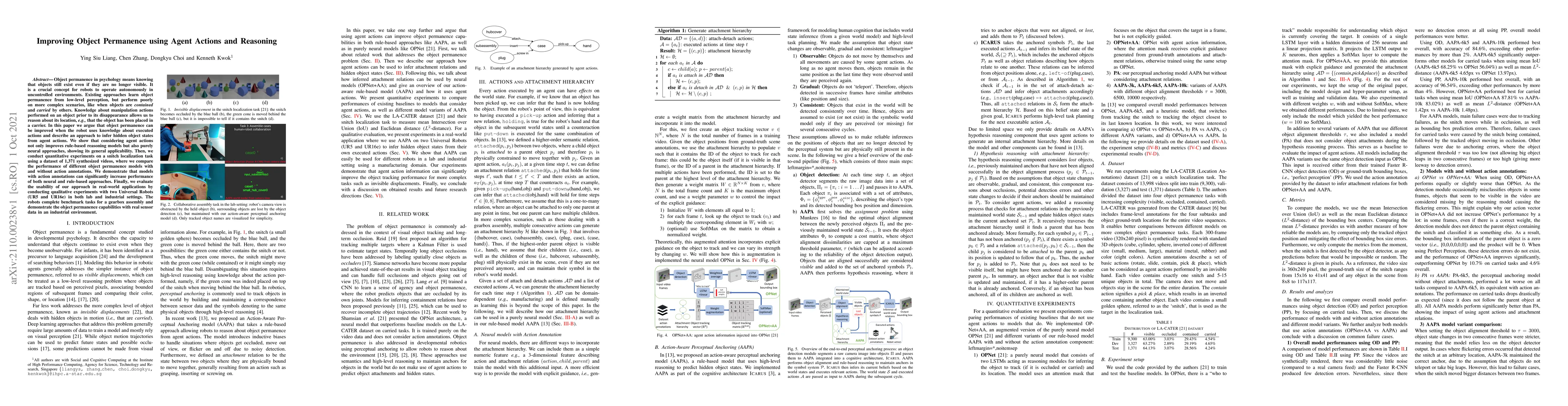 Object permanence in psychology means knowing that objects still exist even if they are no longer visible. It is a crucial concept for robots to operate autonomously in uncontrolled environments. Existing approaches learn object permanence from low-level perception, but perform poorly on more complex scenarios, like when objects are contained and carried by others. Knowledge about manipulation actions performed on an object prior to its disappearance allows us to reason about its location, e.g., that the object has been placed in a carrier. In this paper we argue that object permanence can be improved when the robot uses knowledge about executed actions and describe an approach to infer hidden object states from agent actions. We show that considering agent actions not only improves rule-based reasoning models but also purely neural approaches, showing its general applicability. Then, we conduct quantitative experiments on a snitch localization task using a dataset of 1,371 synthesized videos, where we compare the performance of different object permanence models with and without action annotations. We demonstrate that models with action annotations can significantly increase performance of both neural and rule-based approaches. Finally, we evaluate the usability of our approach in real-world applications by conducting qualitative experiments with two Universal Robots (UR5 and UR16e) in both lab and industrial settings. The robots complete benchmark tasks for a gearbox assembly and demonstrate the object permanence capabilities with real sensor data in an industrial environment.
