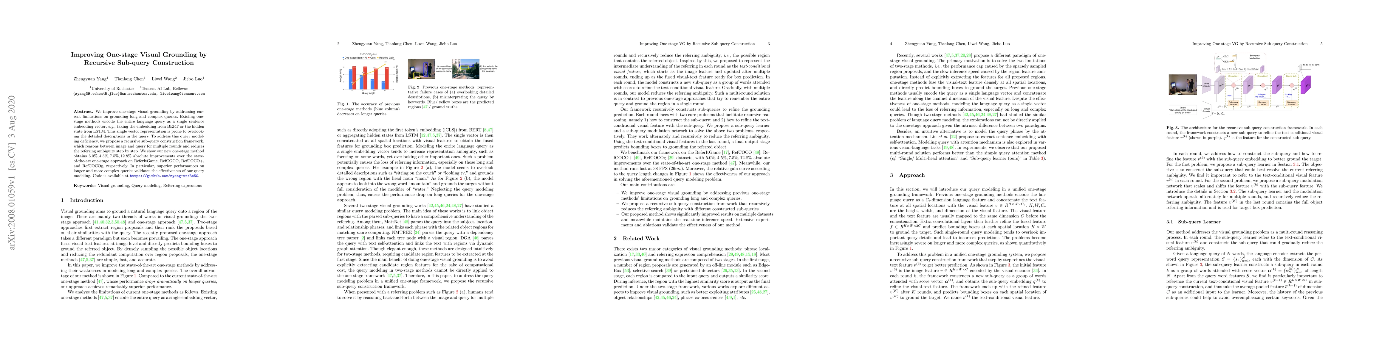 This paper proposes a recursive sub-query construction framework to improve one-stage visual grounding for long and complex queries by iteratively refining the image-query relationship, achieving significant improvements over existing methods across various datasets.