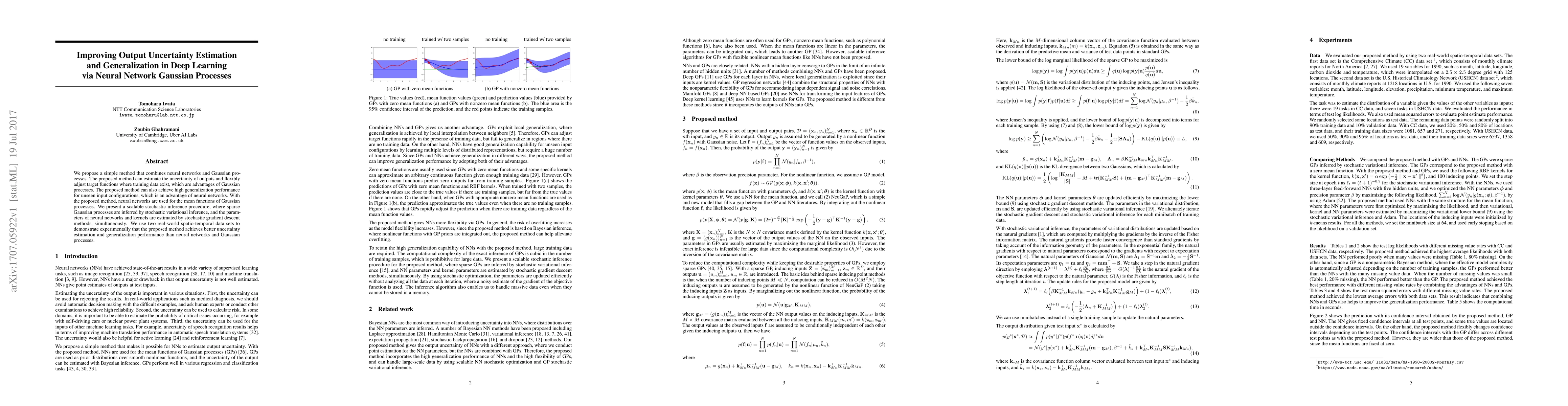 This paper proposes a hybrid method combining neural networks and Gaussian processes to improve output uncertainty estimation and generalization in deep learning. The method leverages neural networks for mean functions and Gaussian processes for uncertainty estimation, achieving better performance than standalone neural networks or Gaussian processes on real-world data.