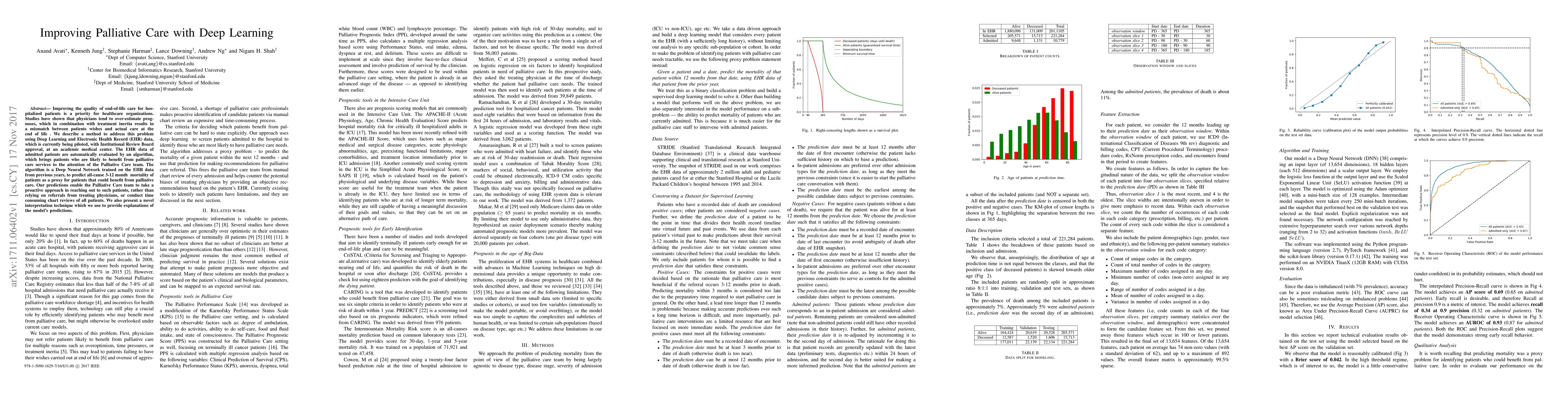 Improving the quality of end-of-life care for hospitalized patients is a priority for healthcare organizations. Studies have shown that physicians tend to over-estimate prognoses, which in combination with treatment inertia results in a mismatch between patients wishes and actual care at the end of life. We describe a method to address this problem using Deep Learning and Electronic Health Record (EHR) data, which is currently being piloted, with Institutional Review Board approval, at an academic medical center. The EHR data of admitted patients are automatically evaluated by an algorithm, which brings patients who are likely to benefit from palliative care services to the attention of the Palliative Care team. The algorithm is a Deep Neural Network trained on the EHR data from previous years, to predict all-cause 3-12 month mortality of patients as a proxy for patients that could benefit from palliative care. Our predictions enable the Palliative Care team to take a proactive approach in reaching out to such patients, rather than relying on referrals from treating physicians, or conduct time consuming chart reviews of all patients. We also present a novel interpretation technique which we use to provide explanations of the model's predictions.