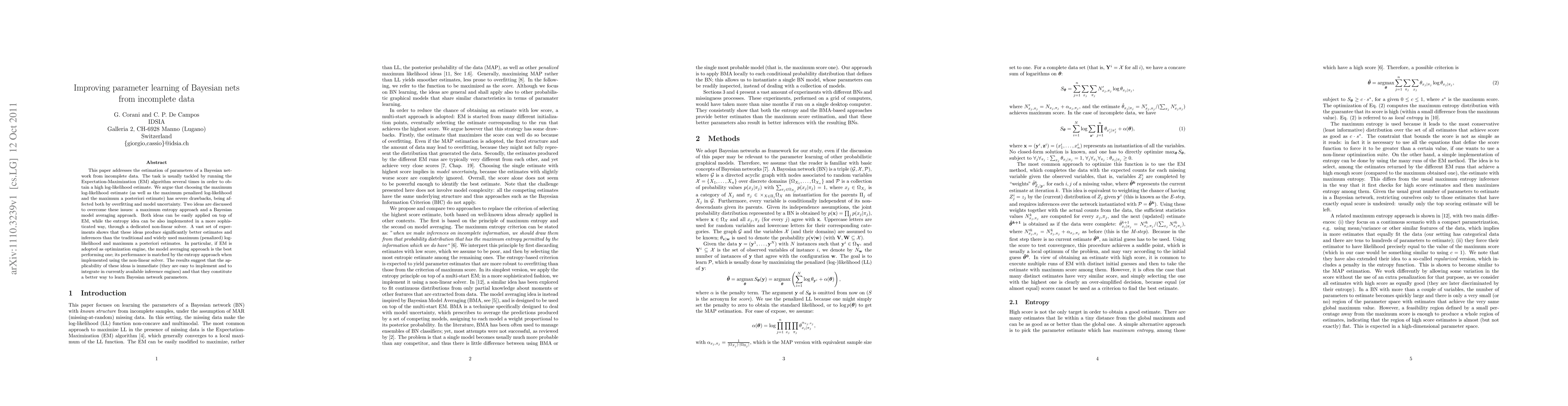 Researchers propose two new methods to improve parameter learning in Bayesian networks from incomplete data: a maximum entropy approach and a Bayesian model averaging approach, which outperform traditional methods in accuracy and ease of implementation.