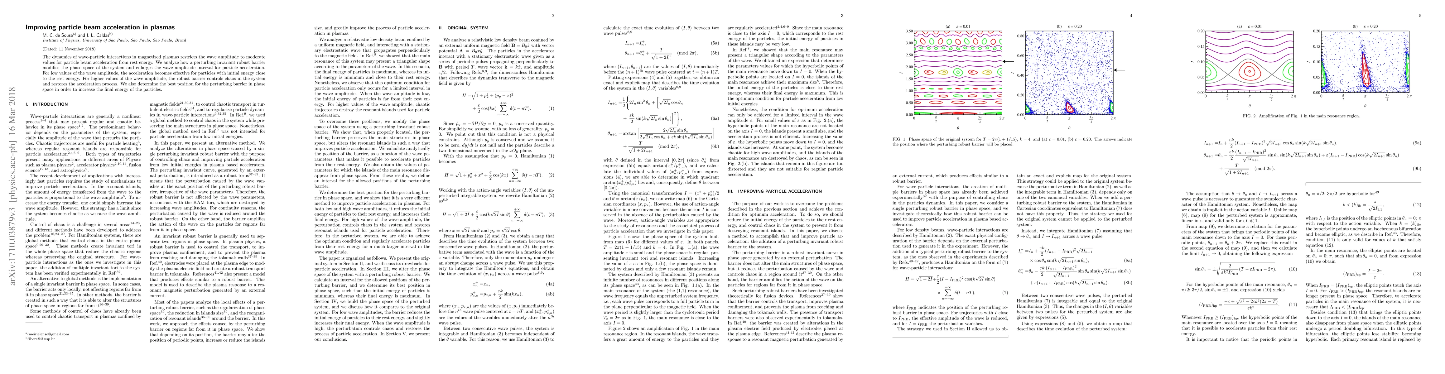 The dynamics of wave-particle interactions in magnetized plasmas restricts the wave amplitude to moderate values for particle beam acceleration from rest energy. We analyze how a perturbing invariant robust barrier modifies the phase space of the system and enlarges the wave amplitude interval for particle acceleration. For low values of the wave amplitude, the acceleration becomes effective for particles with initial energy close to the rest energy. For higher values of the wave amplitude, the robust barrier controls chaos in the system and restores the acceleration process. We also determine the best position for the perturbing barrier in phase space in order to increase the final energy of the particles.