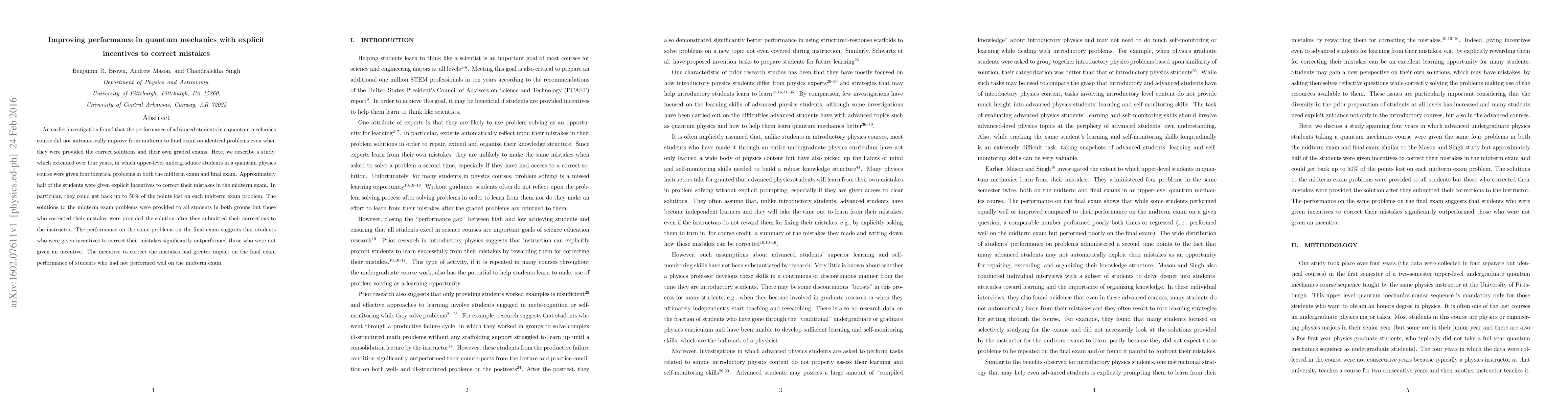 This study investigates the impact of explicit incentives on correcting midterm mistakes on final exam performance in quantum mechanics. Students with incentives to correct their midterm errors significantly outperformed those without, especially those who initially performed poorly.