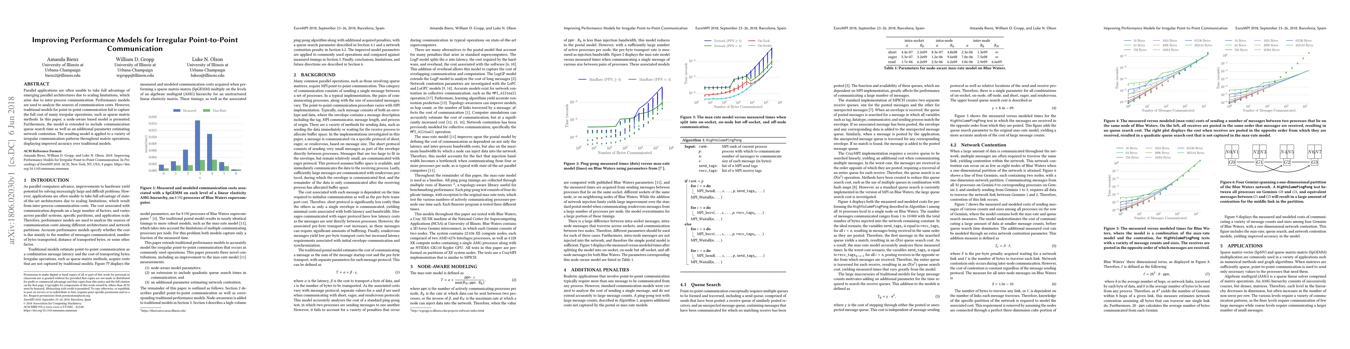 This paper introduces a node-aware performance model to better capture the costs of irregular point-to-point communication, especially in sparse matrix operations. It incorporates communication queue search time and network contention, showing improved accuracy over traditional models for analyzing parallel application communication costs.