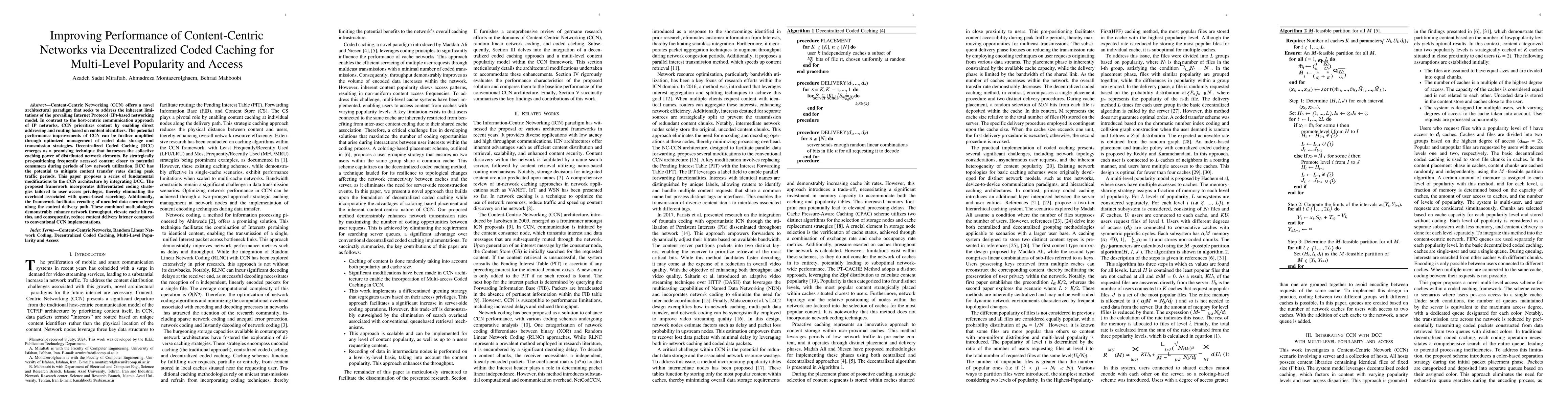 Content-Centric Networking (CCN) offers a novel architectural paradigm that seeks to address the inherent limitations of the prevailing Internet Protocol (IP)-based networking model. In contrast to the host-centric communication approach of IP networks, CCN prioritizes content by enabling direct addressing and routing based on content identifiers. The potential performance improvements of CCN can be further amplified through optimized management of coded data storage and transmission strategies. Decentralized Coded Caching (DCC) emerges as a promising technique that harnesses the collective caching power of distributed network elements. By strategically pre-positioning frequently accessed content closer to potential consumers during periods of low network utilization, DCC has the potential to mitigate content transfer rates during peak traffic periods. This paper proposes a series of fundamental modifications to the CCN architecture by integrating DCC. The proposed framework incorporates differentiated coding strategies tailored to user access privileges, thereby eliminating the overhead associated with queue-based searching. Additionally, the framework facilitates recoding of uncoded data encountered along the content delivery path. These combined methodologies demonstrably enhance network throughput, elevate cache hit ratios, and consequently, reduce content delivery latency compared to conventional CCN implementations.