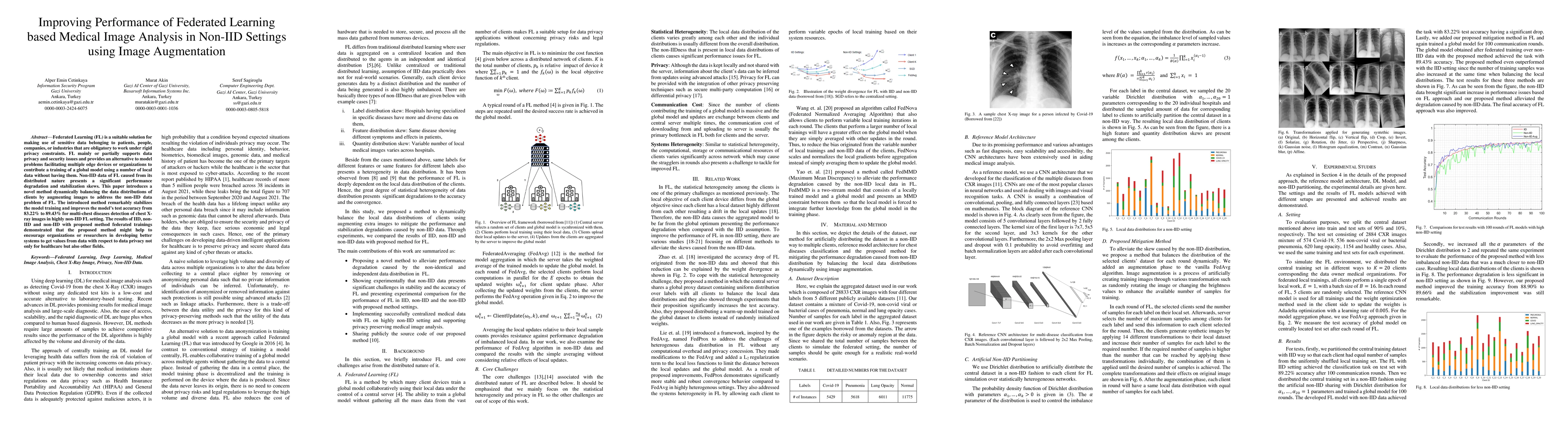 A new method using image augmentation improves the performance of Federated Learning in non-IID settings by stabilizing model training and increasing test accuracy up to 89.43% for chest X-ray images.
