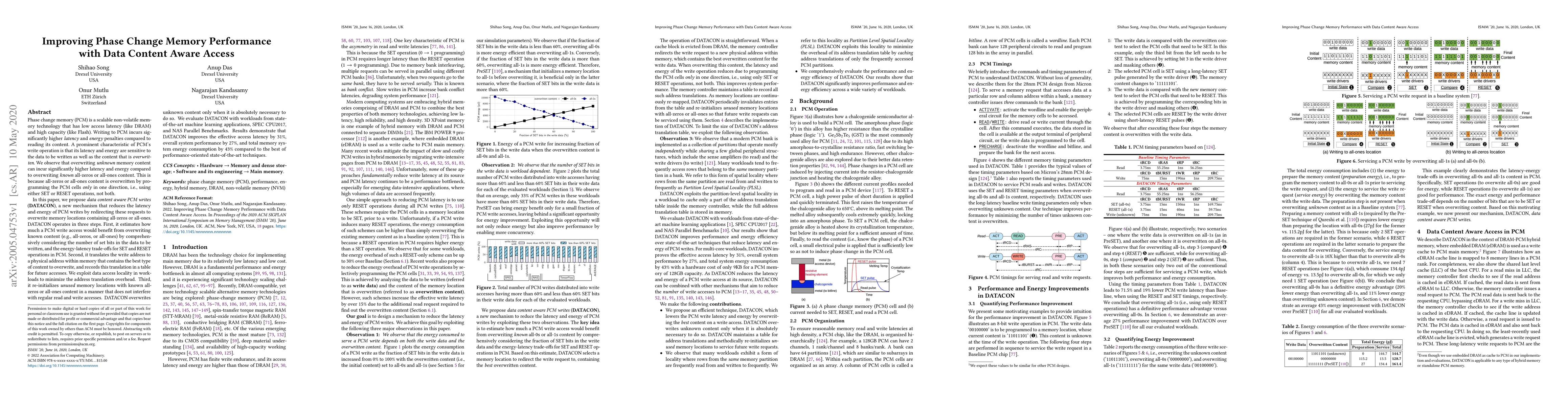 A prominent characteristic of write operation in Phase-Change Memory (PCM) is that its latency and energy are sensitive to the data to be written as well as the content that is overwritten. We observe that overwriting unknown memory content can incur significantly higher latency and energy compared to overwriting known all-zeros or all-ones content. This is because all-zeros or all-ones content is overwritten by programming the PCM cells only in one direction, i.e., using either SET or RESET operations, not both. In this paper, we propose data content aware PCM writes (DATACON), a new mechanism that reduces the latency and energy of PCM writes by redirecting these requests to overwrite memory locations containing all-zeros or all-ones. DATACON operates in three steps. First, it estimates how much a PCM write access would benefit from overwriting known content (e.g., all-zeros, or all-ones) by comprehensively considering the number of set bits in the data to be written, and the energy-latency trade-offs for SET and RESET operations in PCM. Second, it translates the write address to a physical address within memory that contains the best type of content to overwrite, and records this translation in a table for future accesses. We exploit data access locality in workloads to minimize the address translation overhead. Third, it re-initializes unused memory locations with known all-zeros or all-ones content in a manner that does not interfere with regular read and write accesses. DATACON overwrites unknown content only when it is absolutely necessary to do so. We evaluate DATACON with workloads from state-of-the-art machine learning applications, SPEC CPU2017, and NAS Parallel Benchmarks. Results demonstrate that DATACON significantly improves system performance and memory system energy consumption compared to the best of performance-oriented state-of-the-art techniques.