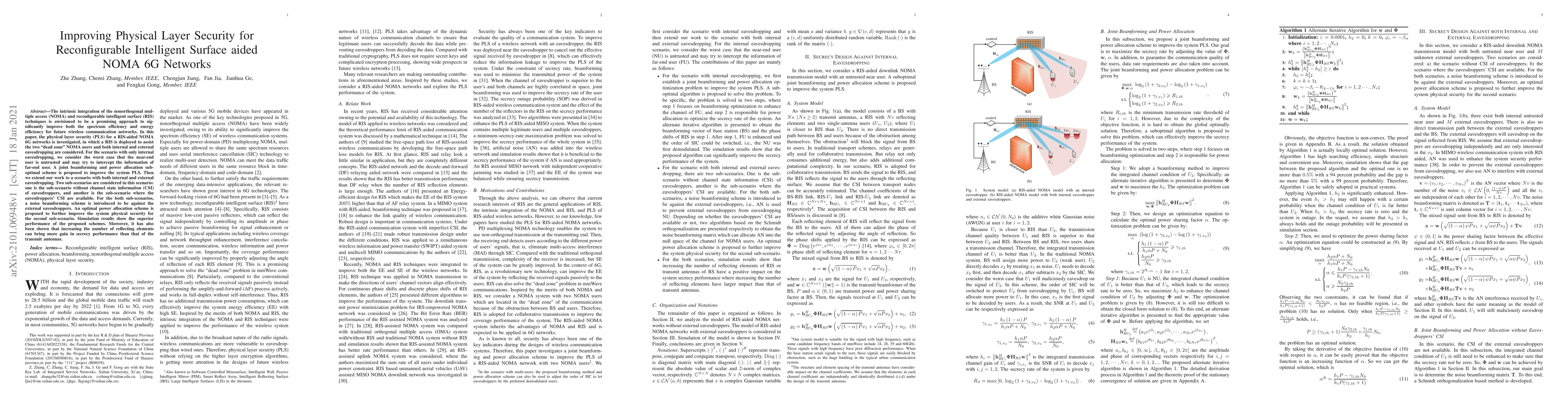 This paper investigates physical layer security in reconfigurable intelligent surface (RIS)-aided nonorthogonal multiple access (NOMA) 6G networks, proposing sub-optimal beamforming and power allocation schemes to enhance security against both internal and external eavesdropping. Simulation results demonstrate improved secrecy performance with more reflecting elements.