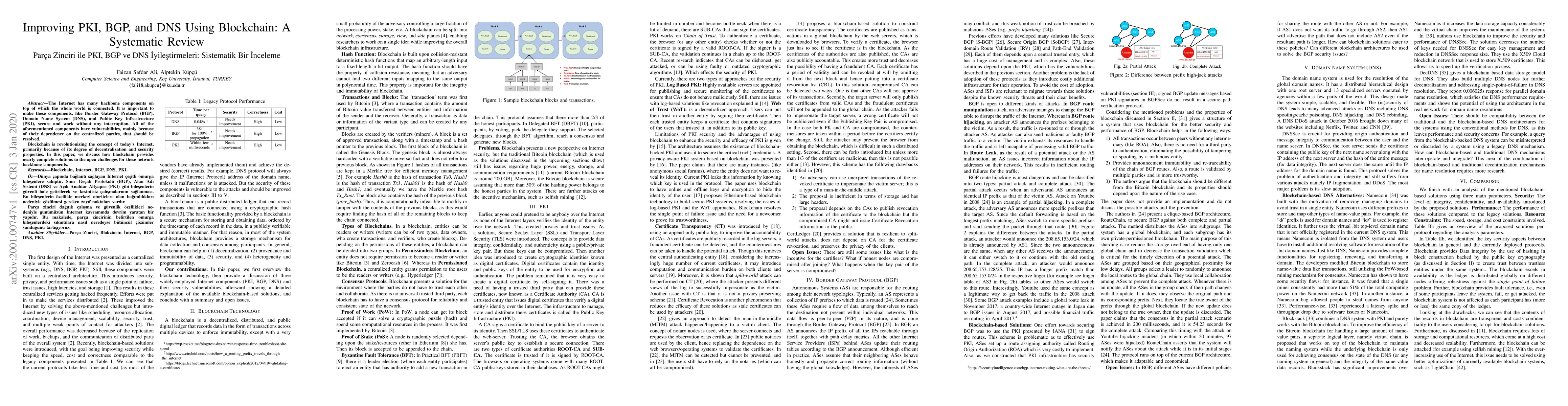 This paper systematically reviews the potential of blockchain technology to enhance the security and reliability of critical Internet components—Border Gateway Protocol (BGP), Domain Name System (DNS), and Public Key Infrastructure (PKI)—by addressing their vulnerabilities stemming from centralized dependencies. Blockchain's decentralized and secure nature offers promising solutions to these challenges.