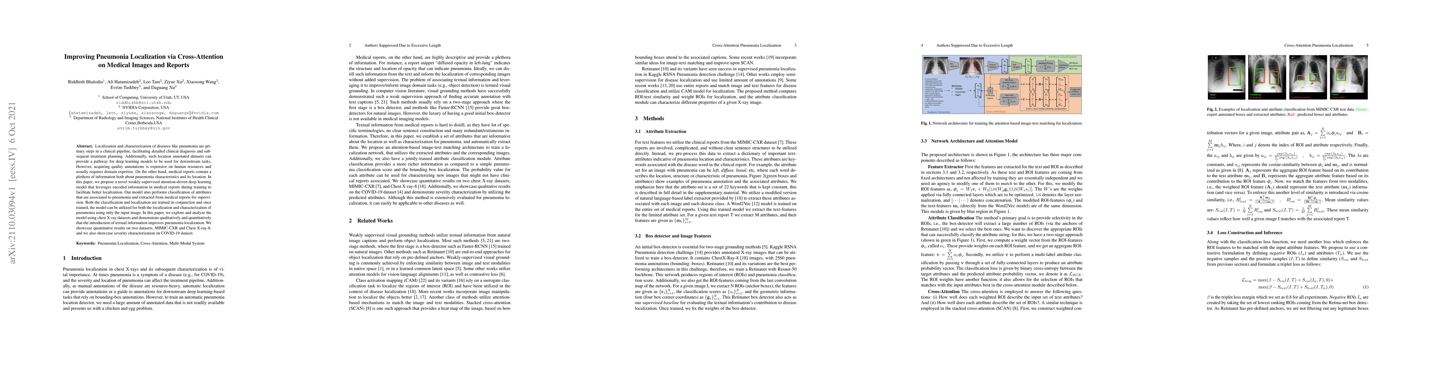 This paper proposes a novel deep learning model that uses medical reports to improve pneumonia localization, demonstrating improved results on chest X-ray datasets and COVID-19 severity characterization.