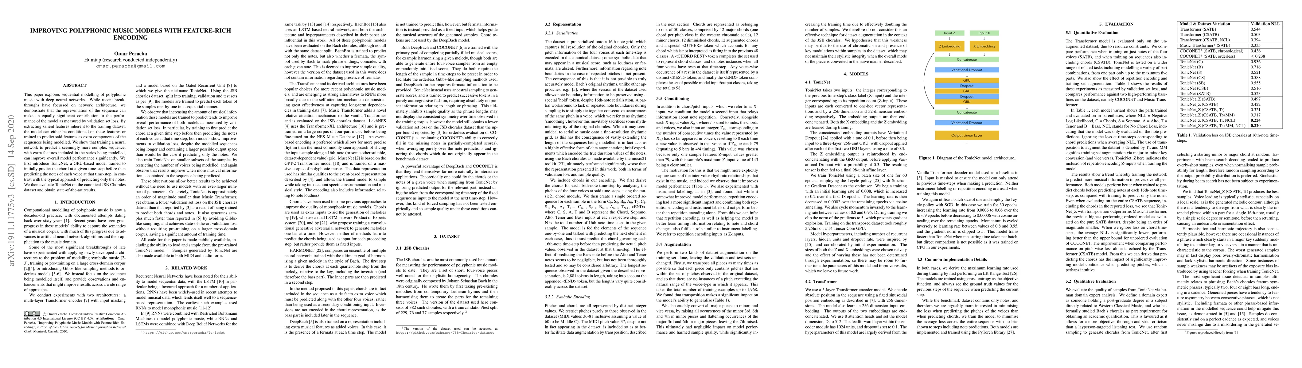 This paper explores sequential modelling of polyphonic music with deep neural networks. While recent breakthroughs have focussed on network architecture, we demonstrate that the representation of the sequence can make an equally significant contribution to the performance of the model as measured by validation set loss. By extracting salient features inherent to the training dataset, the model can either be conditioned on these features or trained to predict said features as extra components of the sequences being modelled. We show that training a neural network to predict a seemingly more complex sequence, with extra features included in the series being modelled, can improve overall model performance significantly. We first introduce TonicNet, a GRU-based model trained to initially predict the chord at a given time-step before then predicting the notes of each voice at that time-step, in contrast with the typical approach of predicting only the notes. We then evaluate TonicNet on the canonical JSB Chorales dataset and obtain state-of-the-art results.