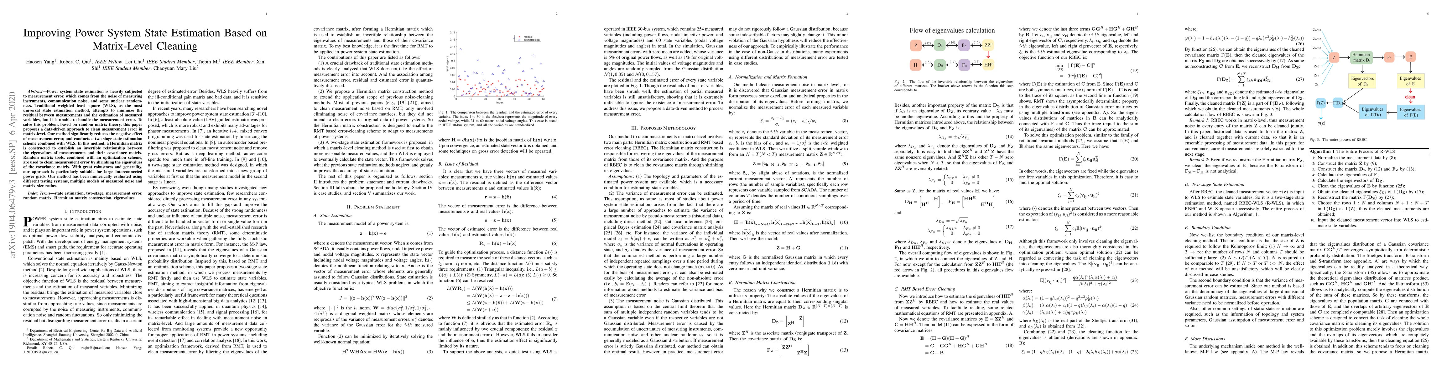 This paper proposes a data-driven method based on random matrix theory to clean measurement errors in power system state estimation, improving upon traditional weighted least square approaches. The method constructs a Hermitian matrix to establish an invertible relationship between measurement eigenvalues and their covariance matrix, shrinking eigenvalues to mitigate errors, and is shown to be robust and effective for large power grids.