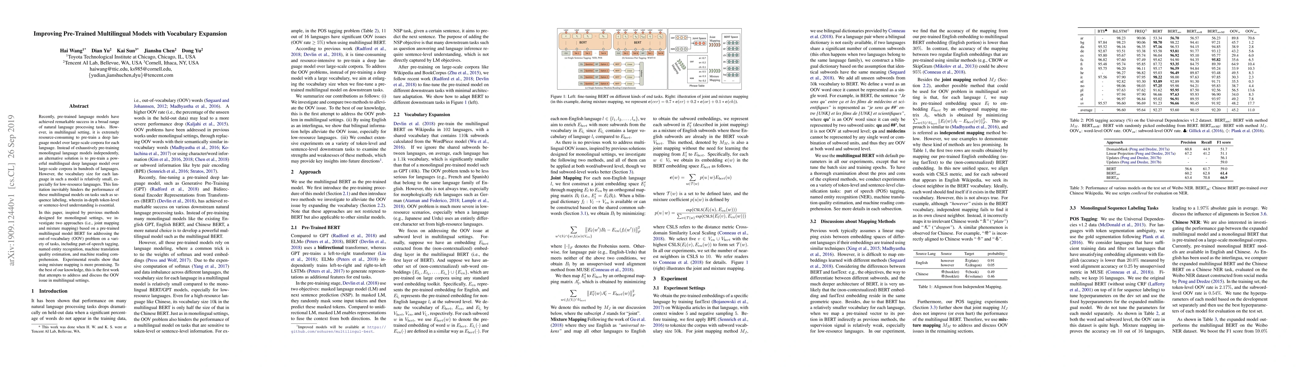 This paper explores methods to enhance pre-trained multilingual models by expanding their vocabulary, specifically addressing the out-of-vocabulary problem using joint and mixture mapping techniques based on BERT. Results indicate that mixture mapping significantly improves performance in tasks like part-of-speech tagging and machine translation.