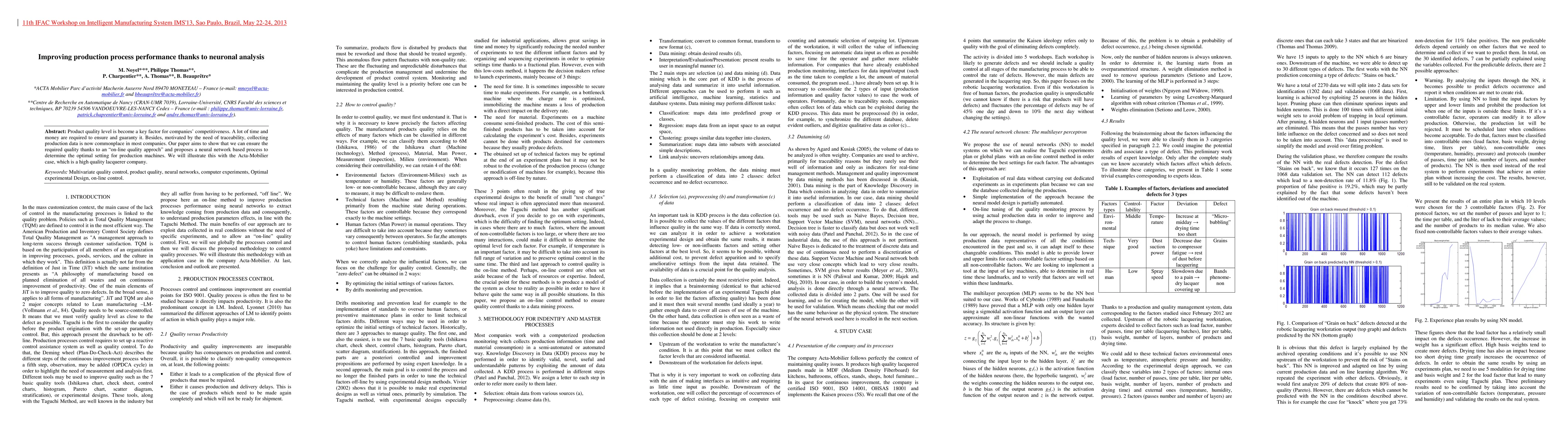 Product quality level is become a key factor for companies' competitiveness. A lot of time and money are required to ensure and guaranty it. Besides, motivated by the need of traceability, collecting production data is now commonplace in most companies. Our paper aims to show that we can ensure the required quality thanks to an "on-line quality approch" and proposes a neural network based process to determine the optimal setting for production machines. We will illustrate this with the Acta-Mobilier case, which is a high quality lacquerer company.