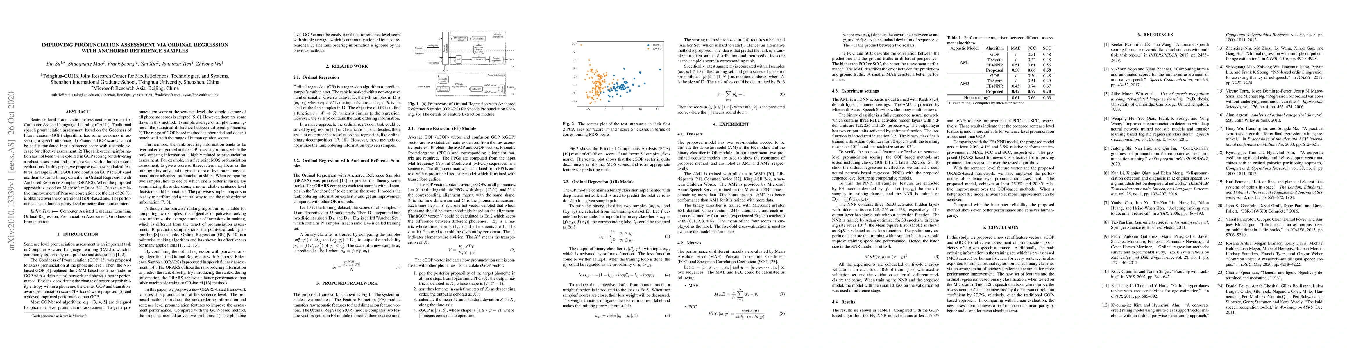 This paper proposes a new Ordinal Regression with Anchored Reference Samples (ORARS) method to improve sentence-level pronunciation assessment in CALL, introducing average GOP (aGOP) and confusion GOP (cGOP) features. The method achieves a 26.9% improvement in Pearson correlation over traditional Goodness of Pronunciation (GOP)-based assessment, reaching human-parity or better performance.