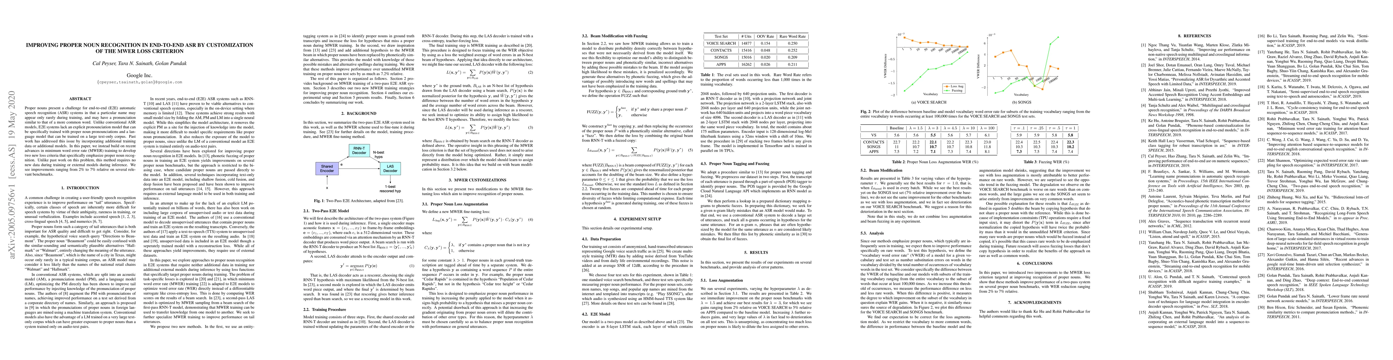 Researchers developed a new method to improve proper noun recognition in end-to-end ASR systems by customizing the MWER loss criterion, achieving improvements of 2-7% on relevant benchmarks.