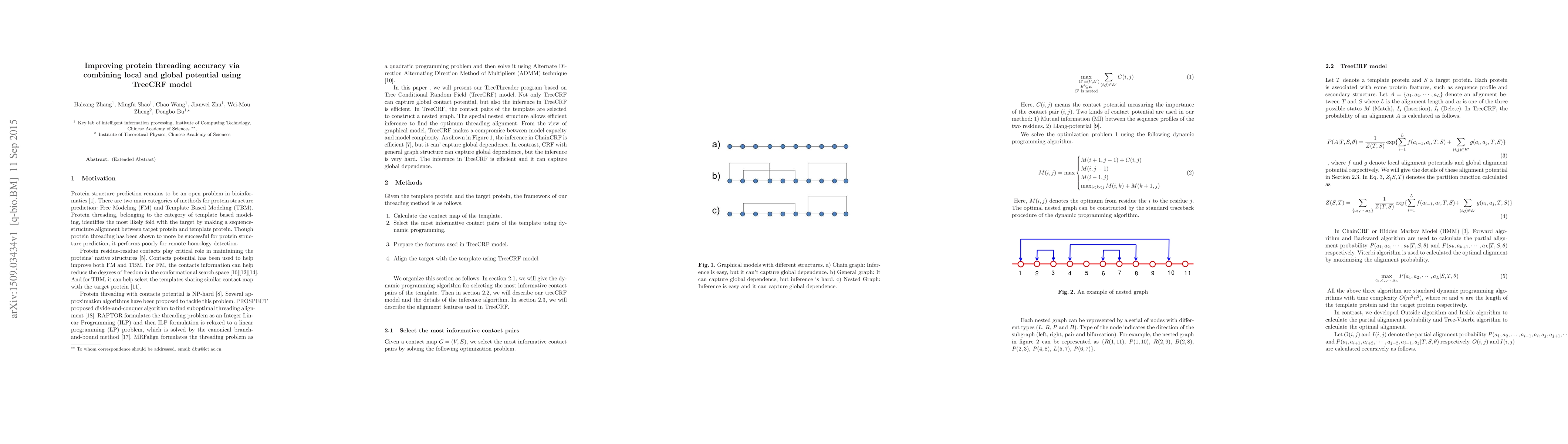 Summary: This paper proposes a TreeCRF model to enhance protein threading accuracy by integrating local and global potentials, aiming to improve the success rate of protein structure prediction, especially for remote homology detection. The approach seeks to combine the strengths of both local sequence-structure alignments and global structural context.