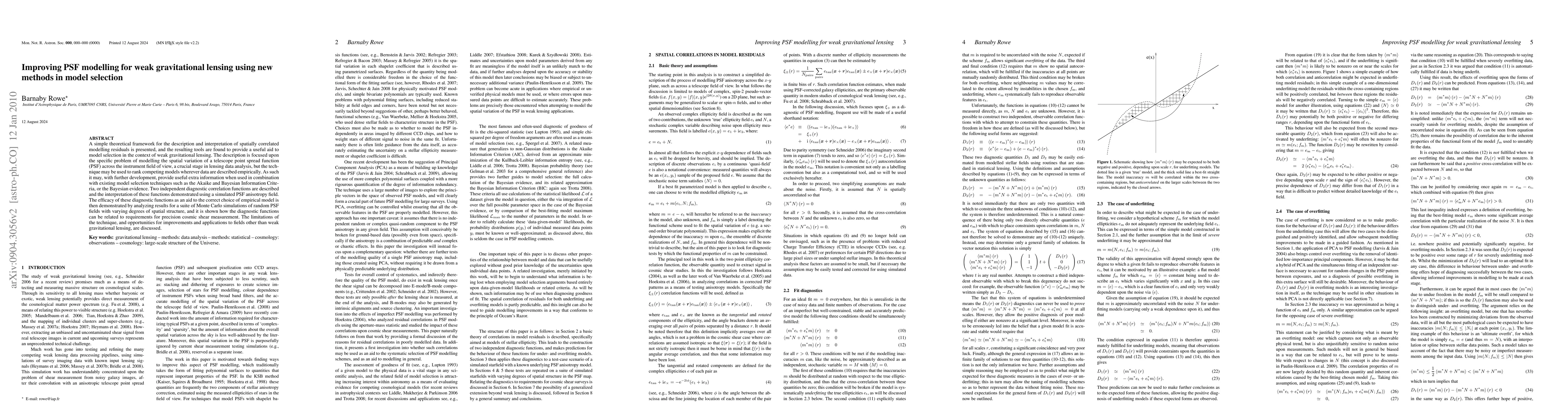 This paper introduces new methods for improving the modelling of spatially correlated modelling residuals in weak gravitational lensing, particularly focusing on the spatial variation of a telescope's point spread function (PSF). The proposed diagnostic correlation functions aid in model selection and can enhance precision cosmic shear measurements, though limitations and potential for broader applications are also discussed.