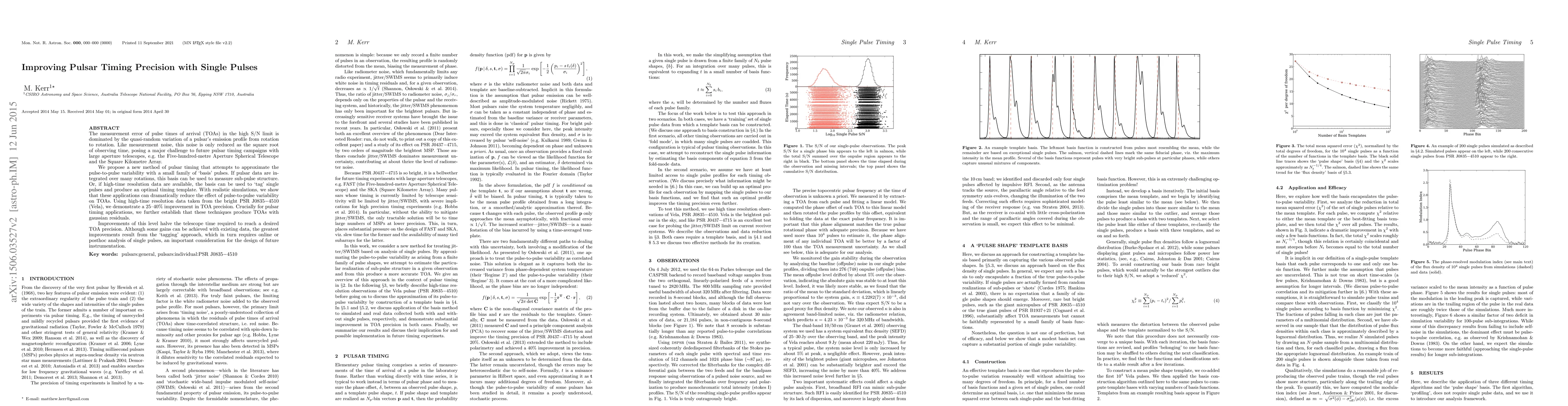This paper proposes a new method to enhance pulsar timing precision by using a small family of 'basis' pulses to approximate pulse-to-pulse variability, demonstrating a 25-40% improvement in timing precision for PSR J0835-4510. This approach significantly reduces the effect of variability on pulse times of arrival, halving the telescope time needed for desired precision.
