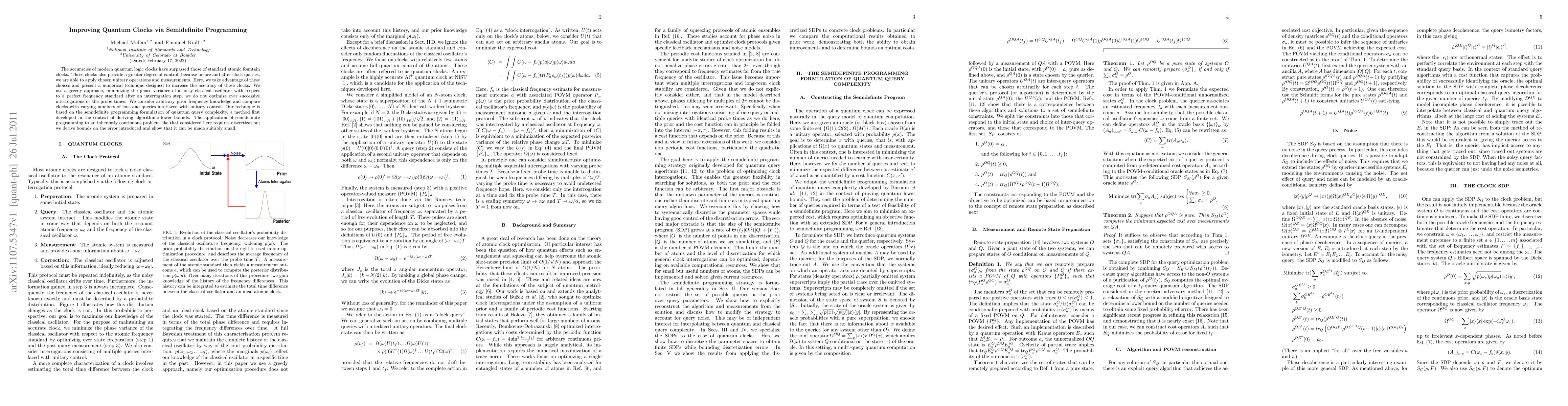 The accuracies of modern quantum logic clocks have surpassed those of standard atomic fountain clocks. These clocks also provide a greater degree of control, because before and after clock queries, we are able to apply chosen unitary operations and measurements. Here, we take advantage of these choices and present a numerical technique designed to increase the accuracy of these clocks. We use a greedy approach, minimizing the phase variance of a noisy classical oscillator with respect to a perfect frequency standard after an interrogation step; we do not optimize over successive interrogations or the probe times. We consider arbitrary prior frequency knowledge and compare clocks with varying numbers of ions and queries interlaced with unitary control. Our technique is based on the semidefinite programming formulation of quantum query complexity, a method first developed in the context of deriving algorithmic lower bounds. The application of semidefinite programming to an inherently continuous problem like that considered here requires discretization; we derive bounds on the error introduced and show that it can be made suitably small.