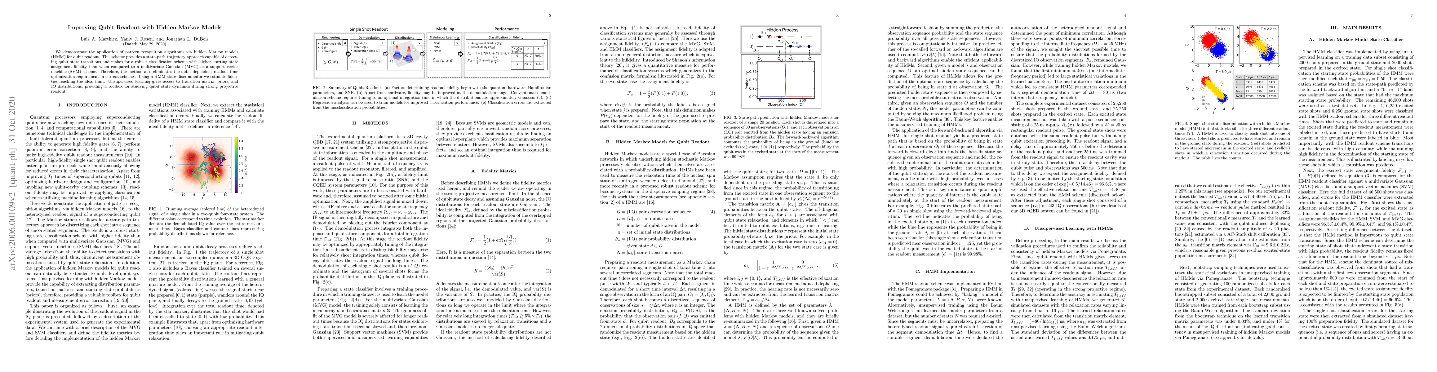We demonstrate the application of pattern recognition algorithms via hidden Markov models (HMM) for qubit readout. This scheme provides a state-path trajectory approach capable of detecting qubit state transitions and makes for a robust classification scheme with higher starting state assignment fidelity than when compared to a multivariate Gaussian (MVG) or a support vector machine (SVM) scheme. Therefore, the method also eliminates the qubit-dependent readout time optimization requirement in current schemes. Using a HMM state discriminator we estimate fidelities reaching the ideal limit. Unsupervised learning gives access to transition matrix, priors, and IQ distributions, providing a toolbox for studying qubit state dynamics during strong projective readout.