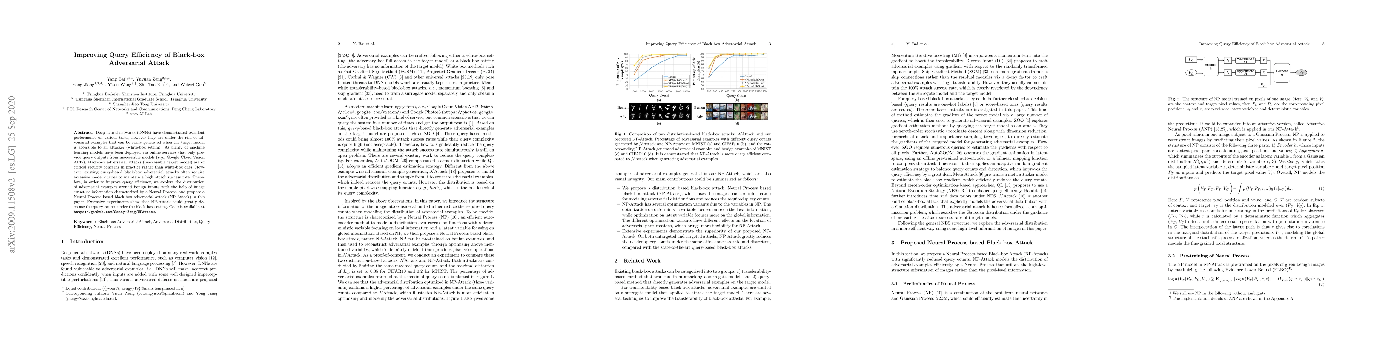 This paper proposes a Neural Process based black-box adversarial attack (NP-Attack) to improve query efficiency in adversarial attacks against inaccessible models. The method leverages image structure information to reduce the number of required model queries while maintaining high attack success rates.