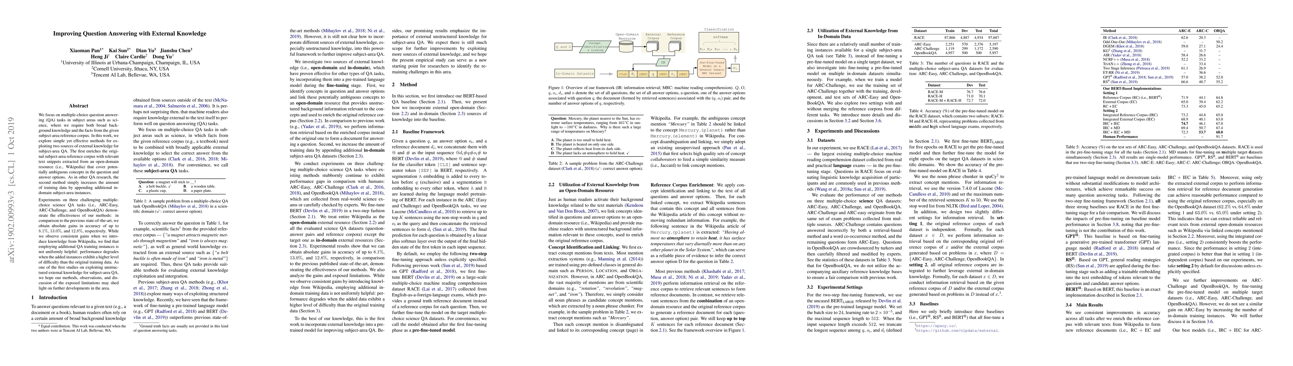 Researchers developed two methods to improve question answering with external knowledge, achieving gains of up to 8.1% in accuracy for multiple-choice science QA tasks.