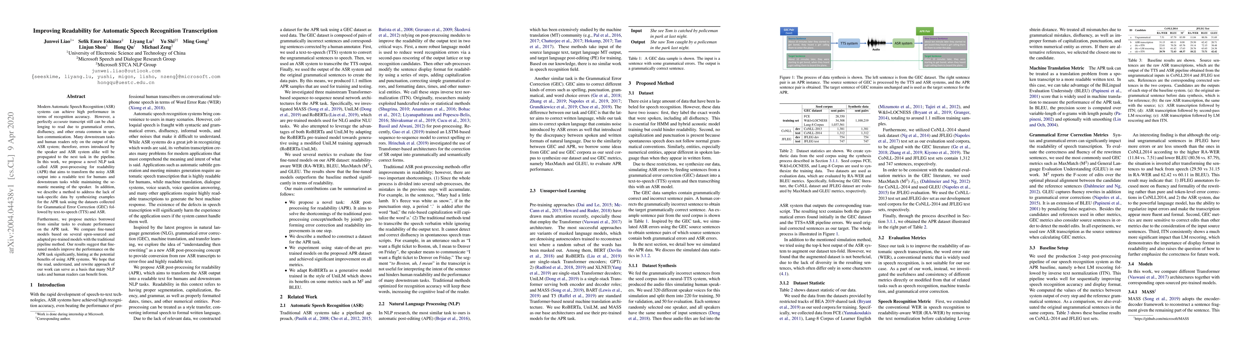Modern Automatic Speech Recognition (ASR) systems can achieve high performance in terms of recognition accuracy. However, a perfectly accurate transcript still can be challenging to read due to grammatical errors, disfluency, and other errata common in spoken communication. Many downstream tasks and human readers rely on the output of the ASR system; therefore, errors introduced by the speaker and ASR system alike will be propagated to the next task in the pipeline. In this work, we propose a novel NLP task called ASR post-processing for readability (APR) that aims to transform the noisy ASR output into a readable text for humans and downstream tasks while maintaining the semantic meaning of the speaker. In addition, we describe a method to address the lack of task-specific data by synthesizing examples for the APR task using the datasets collected for Grammatical Error Correction (GEC) followed by text-to-speech (TTS) and ASR. Furthermore, we propose metrics borrowed from similar tasks to evaluate performance on the APR task. We compare fine-tuned models based on several open-sourced and adapted pre-trained models with the traditional pipeline method. Our results suggest that finetuned models improve the performance on the APR task significantly, hinting at the potential benefits of using APR systems. We hope that the read, understand, and rewrite approach of our work can serve as a basis that many NLP tasks and human readers can benefit from.
