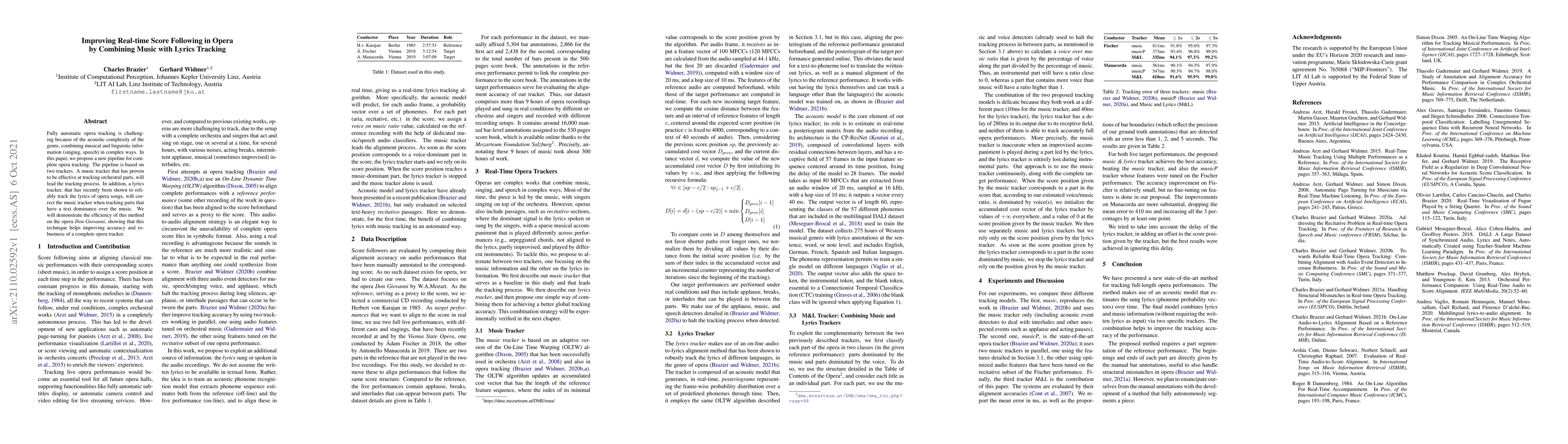 Fully automatic opera tracking is challenging because of the acoustic complexity of the genre, combining musical and linguistic information (singing, speech) in complex ways. In this paper, we propose a new pipeline for complete opera tracking. The pipeline is based on two trackers. A music tracker that has proven to be effective at tracking orchestral parts, will lead the tracking process. In addition, a lyrics tracker, that has recently been shown to reliably track the lyrics of opera songs, will correct the music tracker when tracking parts that have a text dominance over the music. We will demonstrate the efficiency of this method on the opera Don Giovanni, showing that this technique helps improving accuracy and robustness of a complete opera tracker.
