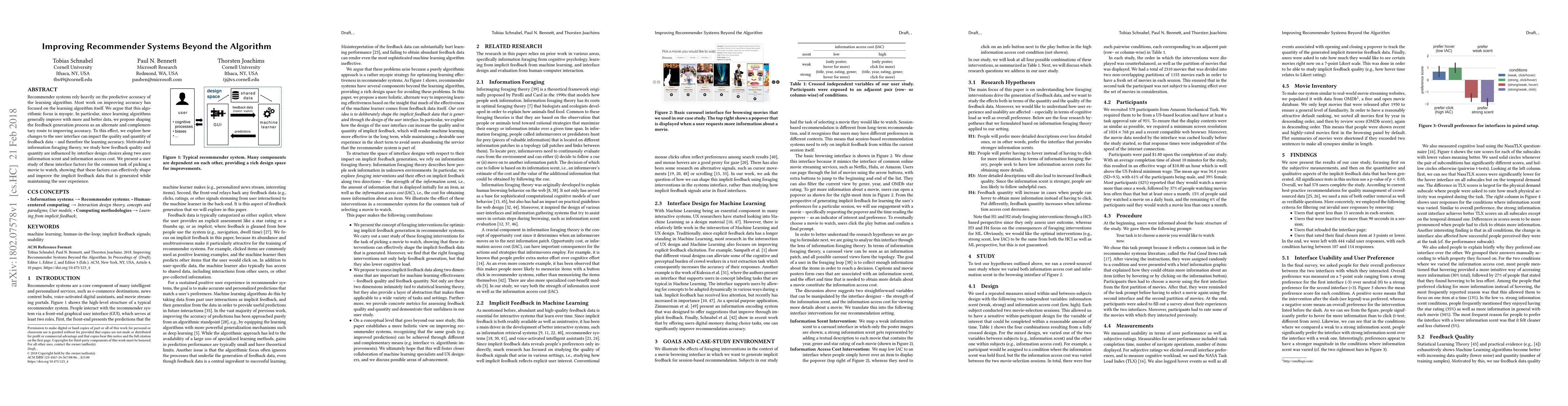 Recommender systems can improve accuracy by shaping feedback generation through interface design choices, such as information scent and access cost, which influence user behavior and implicit feedback quality.
