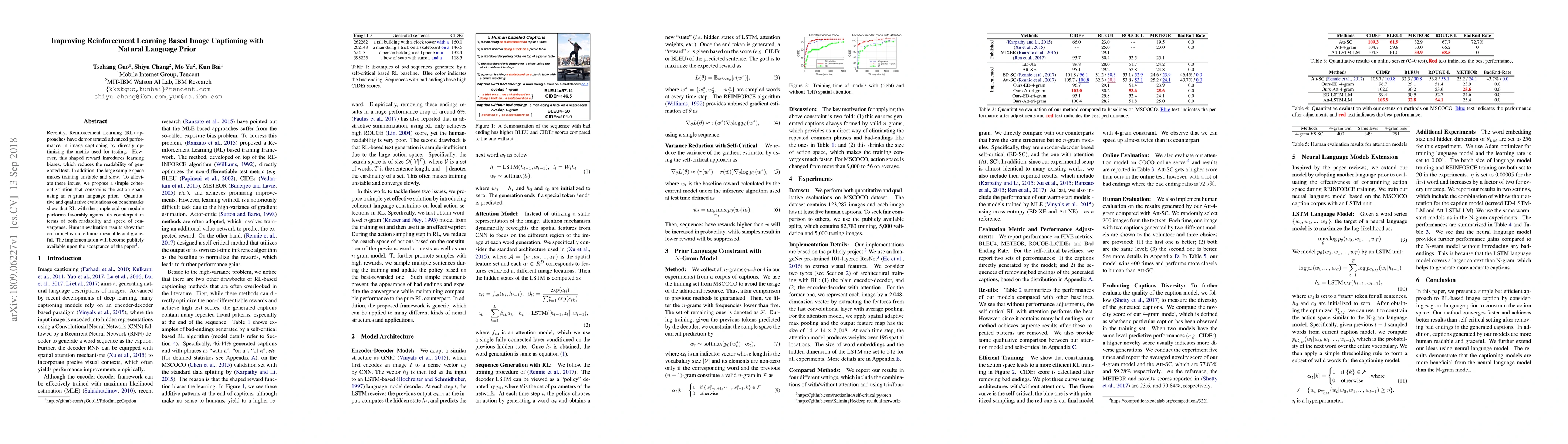 Recently, Reinforcement Learning (RL) approaches have demonstrated advanced performance in image captioning by directly optimizing the metric used for testing. However, this shaped reward introduces learning biases, which reduces the readability of generated text. In addition, the large sample space makes training unstable and slow. To alleviate these issues, we propose a simple coherent solution that constrains the action space using an n-gram language prior. Quantitative and qualitative evaluations on benchmarks show that RL with the simple add-on module performs favorably against its counterpart in terms of both readability and speed of convergence. Human evaluation results show that our model is more human readable and graceful. The implementation will become publicly available upon the acceptance of the paper.