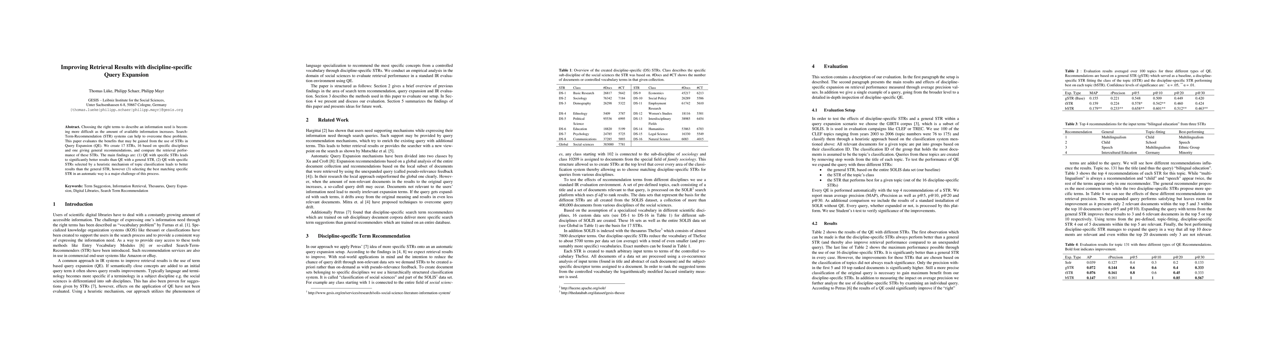 Using specialized term recommendations in query expansion improves search results, but selecting the best match automatically remains a challenge.