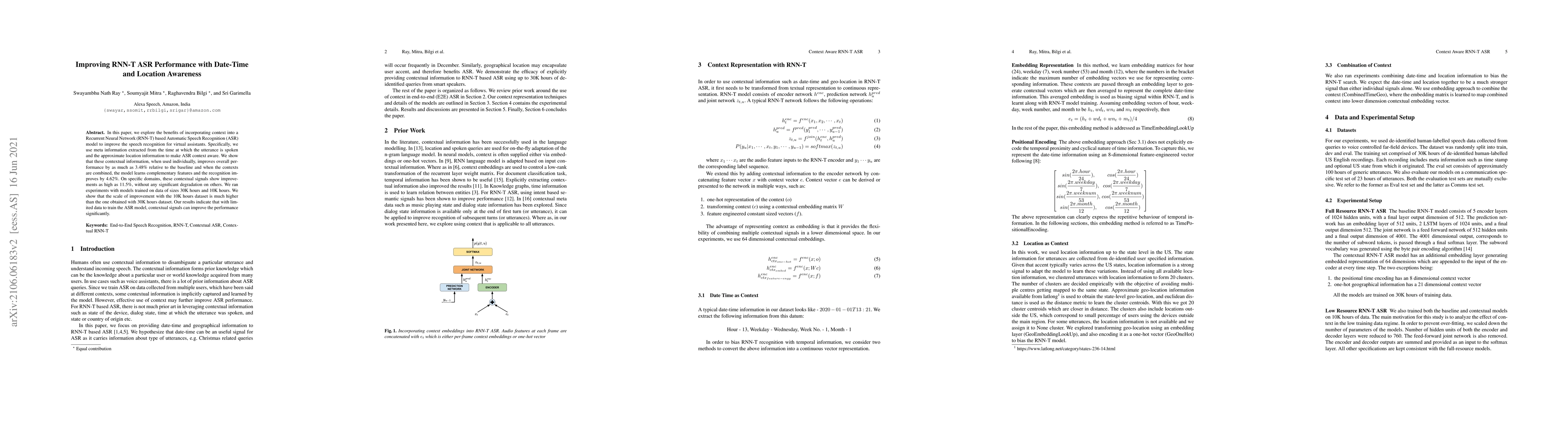This paper investigates enhancing RNN-T based ASR models with date-time and location context to improve virtual assistant speech recognition. Contextual information boosts overall performance by up to 4.62% when combined, especially in specific domains.