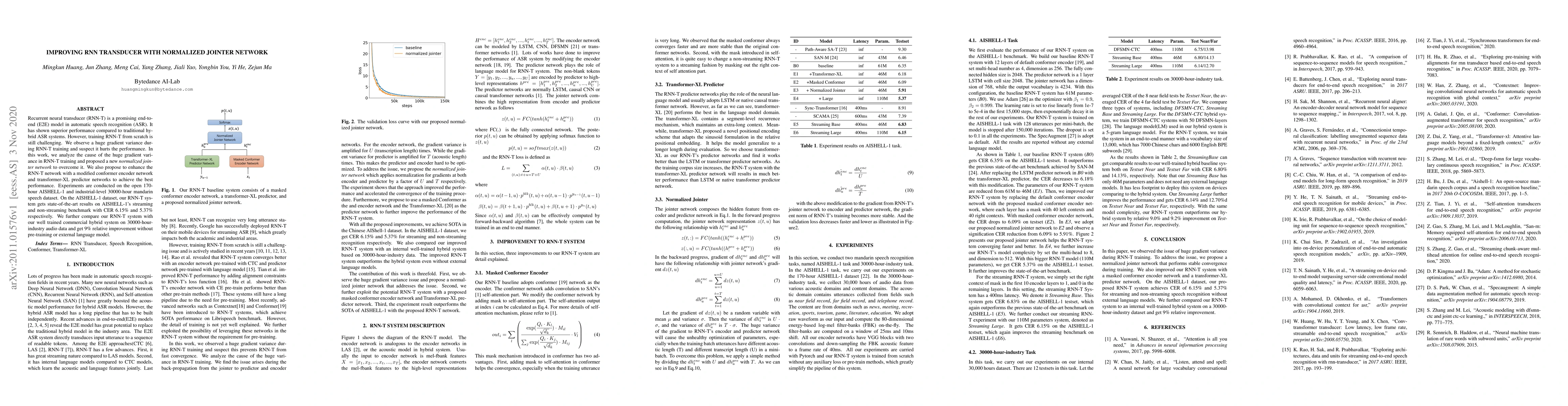 This paper proposes a normalized jointer network to address the gradient variance issue in training Recurrent Neural Transducer (RNN-T) models for automatic speech recognition, achieving state-of-the-art results on AISHELL-1 and a 9% relative improvement over a commercial hybrid system on a large mandarin dataset.