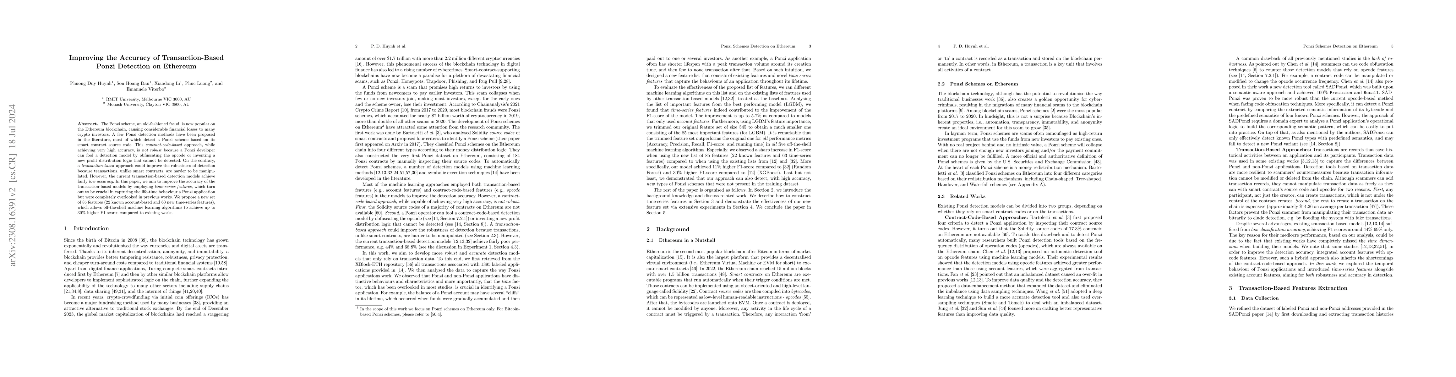 This paper proposes new transaction-based models for detecting Ponzi schemes on Ethereum, utilizing novel time-dependent features to enhance both robustness and accuracy. These methods outperform existing models by focusing solely on transaction data, which are harder to manipulate compared to smart contract codes.