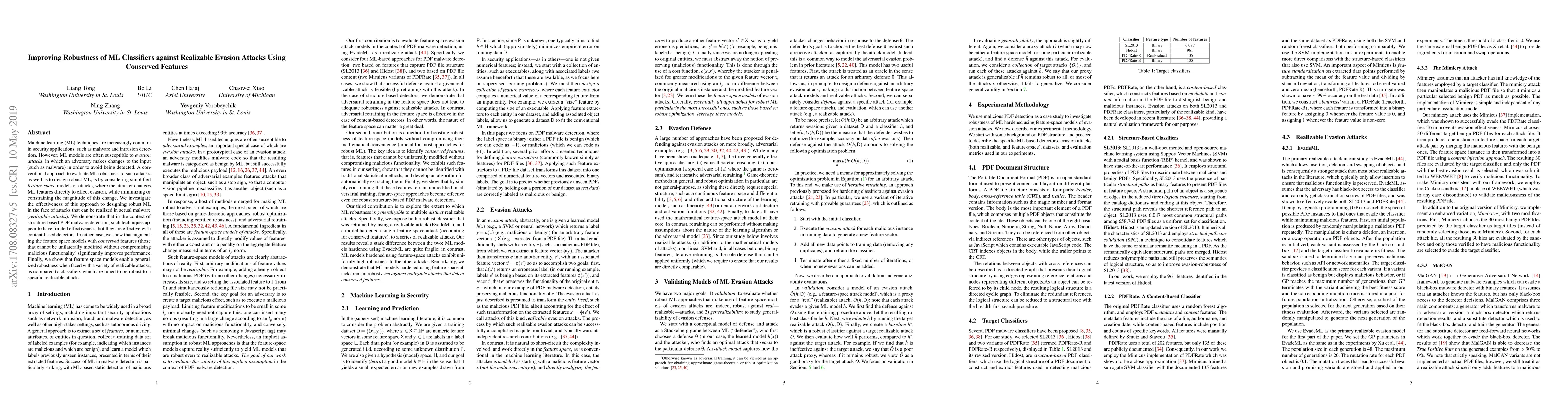 This paper investigates the robustness of ML classifiers against realizable evasion attacks by incorporating conserved features. It finds that while conventional feature-space models have limited effectiveness, adding conserved features significantly improves robustness, especially for content-based detectors, and enables generalized robustness against various realizable attacks.